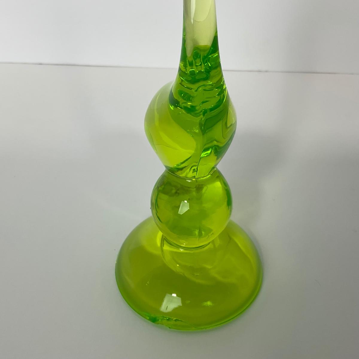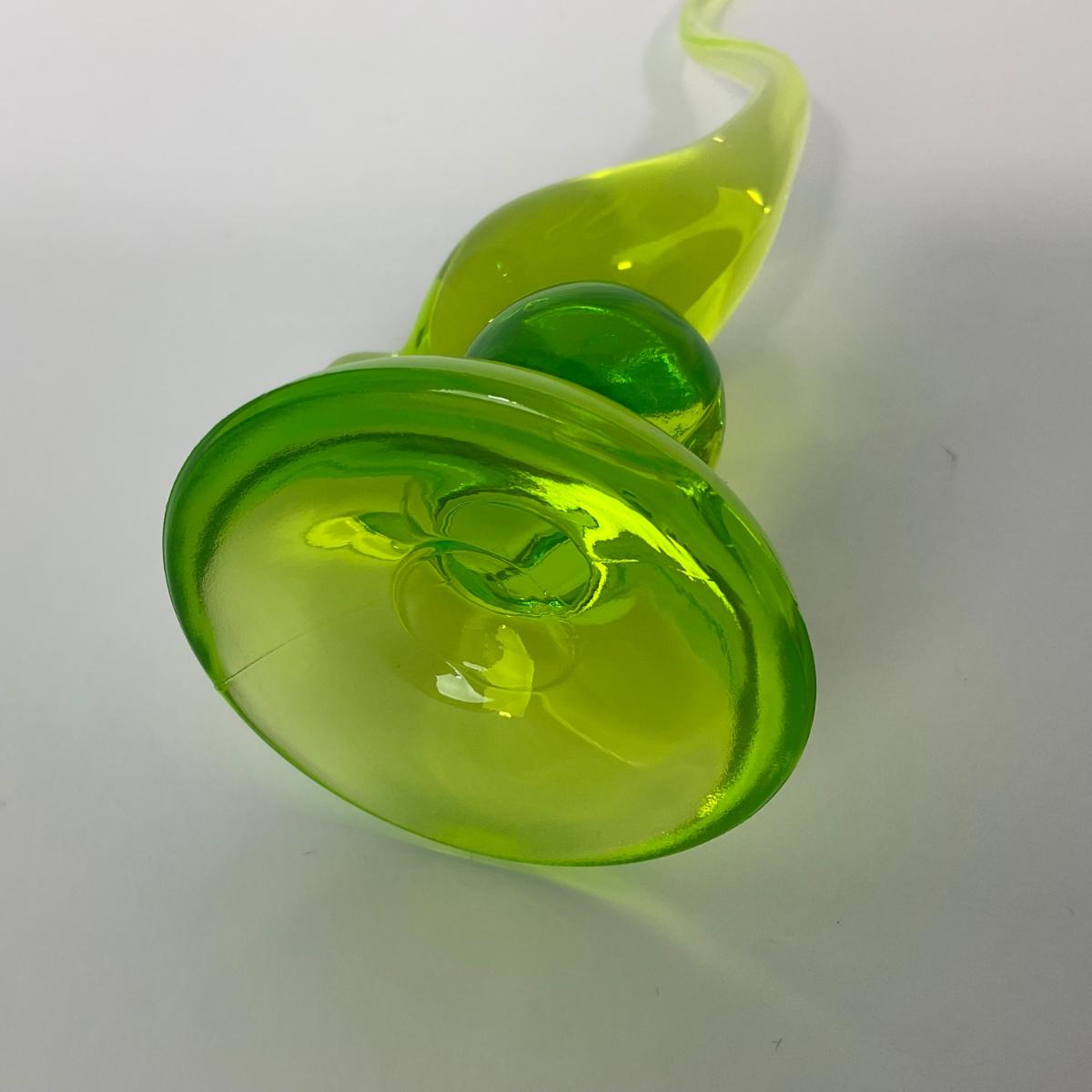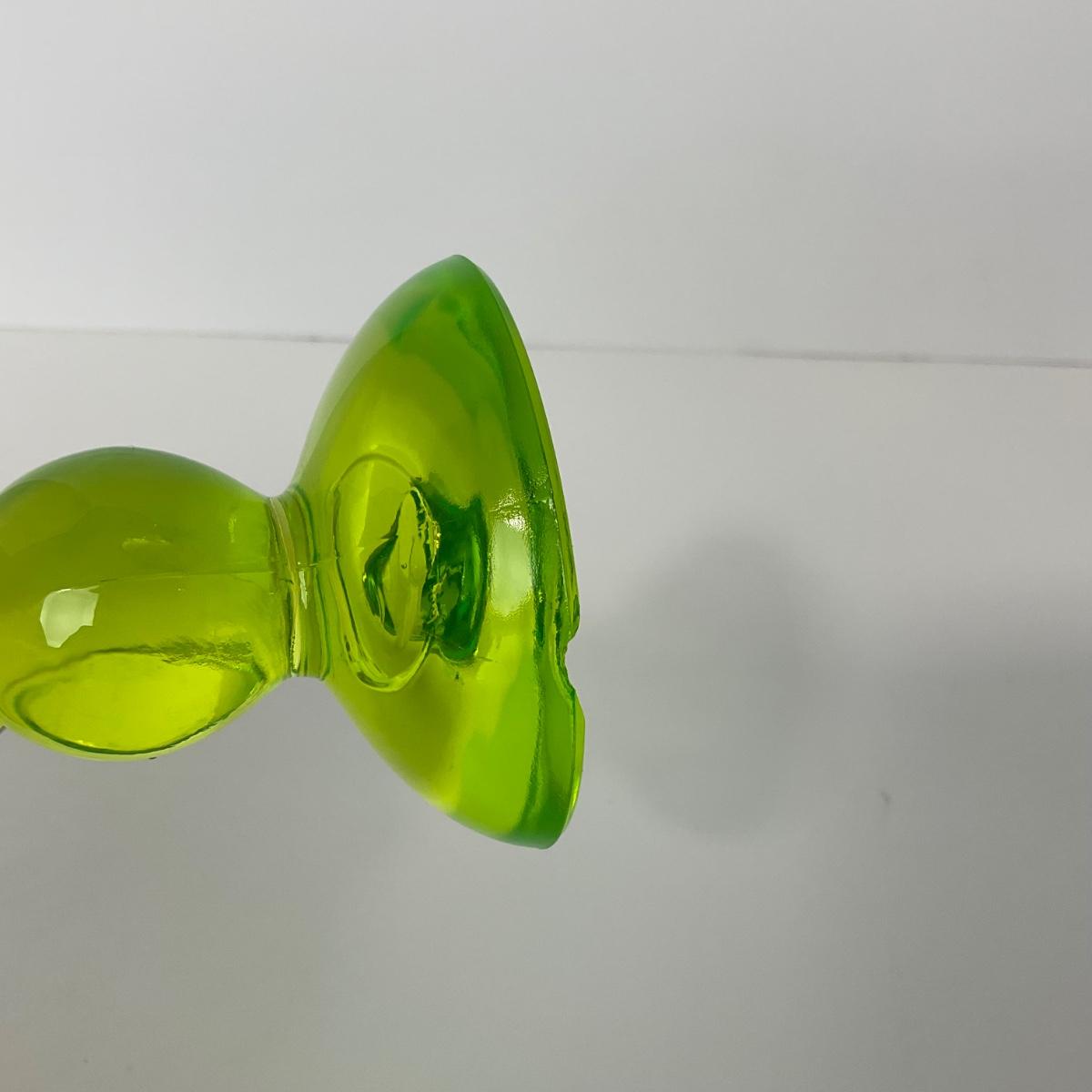 One vintage Uranium glass mid century long tail bird. This yellow green piece is made with uranium so glows under black light. This piece does have a chip on the base but is in otherwise amazing shape. 9 1/2 inches tall. Please see photos for details and condition. Any condition statement is given as a courtesy to a client, is an opinion, and should not be treated as a statement of fact. Reference to condition written, oral or within a condition report shall not be regarded as a full account of condition and may not include all defects, alterations, or restorations. Absence of a condition report does not imply a lot is flawless or lacking imperfections or damage. Katherine’s Auction & Appraisal Service shall have no responsibility for any error or omission. Returns shall not be accepted on the basis of condition. ::: Shipping is available on this lot. If you require shipping you must let us know at the close of the auction. We will coordinate with you after the item has been won. Shipping fees will include insurance up to or exceeding the value of all items being mailed. If you have any questions regarding this lot please contact the auctioneer either via this website, by direct email or by phone. PICK UP TIMES and other important information can be found in the TERMS and DESCRIPTION of the auction. Please take a look for pertinent information. Thanks!