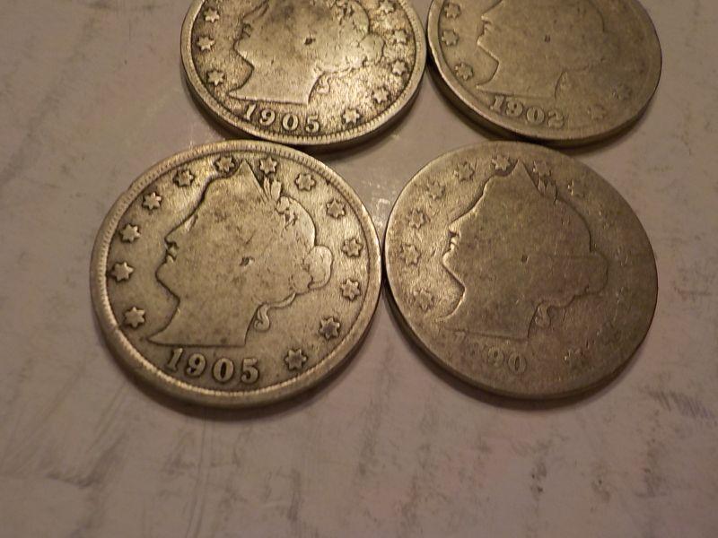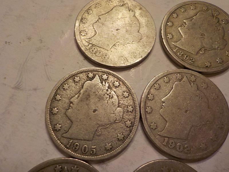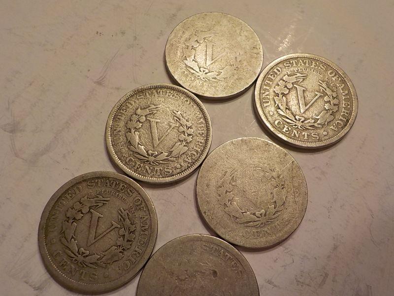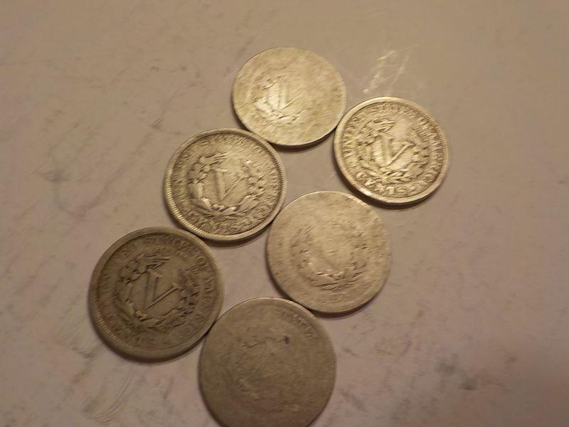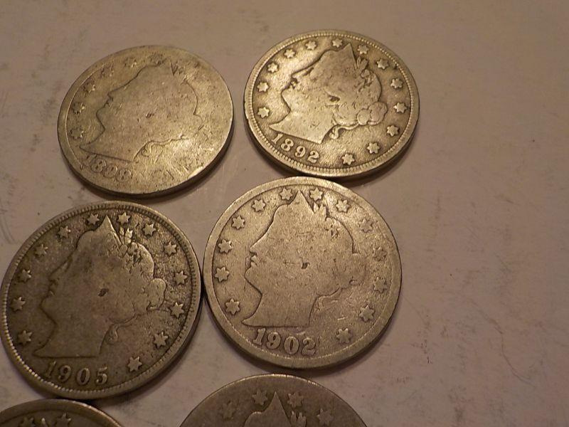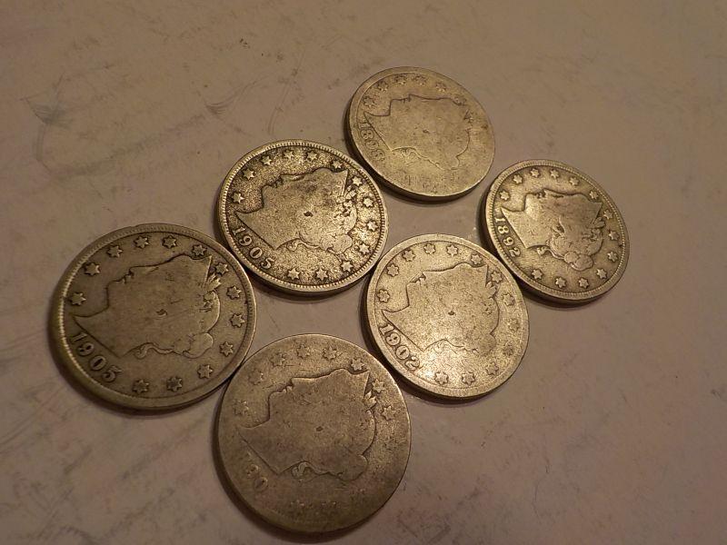 6- V - Nickels 1905, 1902, 1892,1886.