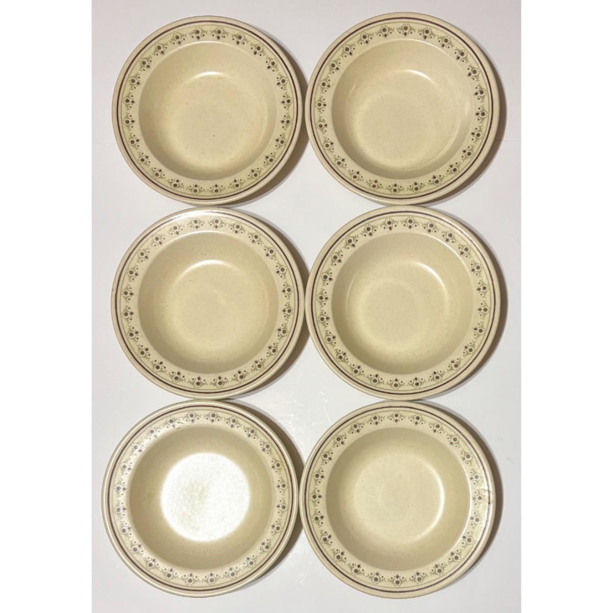 You get six bowls that are in good condition with minor surface wear. Each bowl stands approximately 1.5" tall and has a 8.25" diameter. Please see all pictures. Thank you for looking. As a reminder, if this is a lot, we do not break up lots. Also, all items are prepacked, so each item is sent individually. Any item that qualifies for media mail and weighs over one pound will be shipped via media mail. Otherwise, the item will be shipped USPS ground advantage, or UPS ground. Shipping for this item is $14.00. Items ship within two days after payment is received. Item SKU is OTH3233.