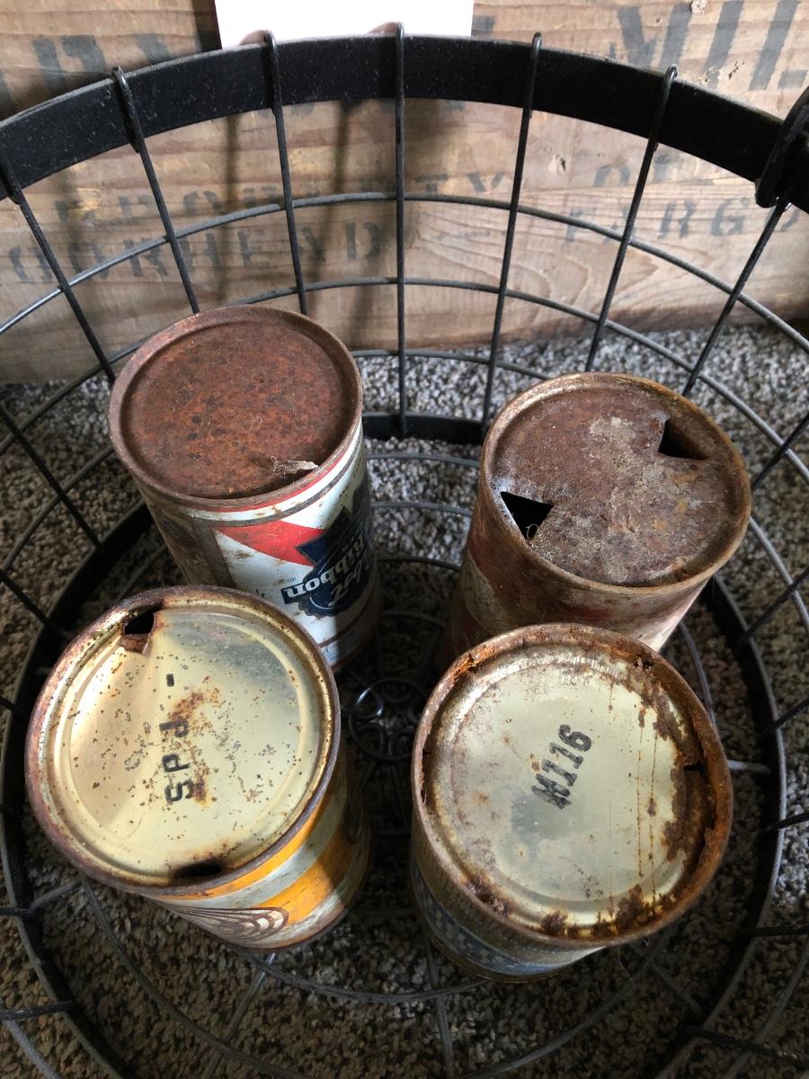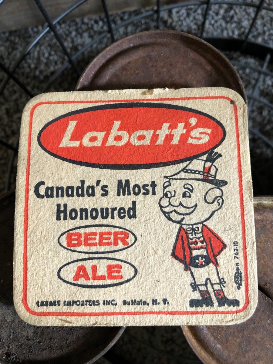 OK the coolest thing about this set of cans is that the Michelob is actually a piggy bank!! The Cold Spring can has a couple dents. A random Labatts coaster too