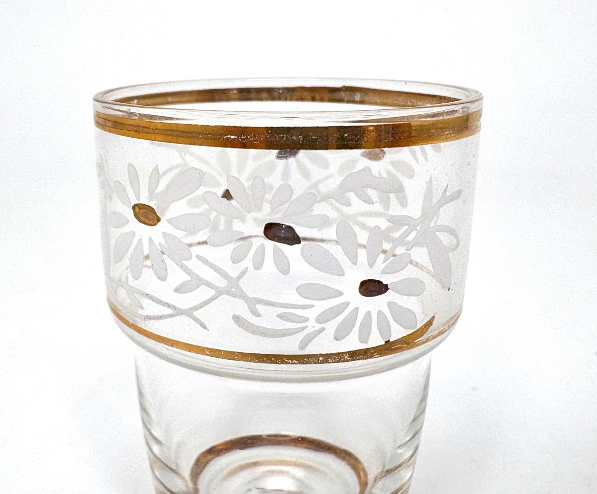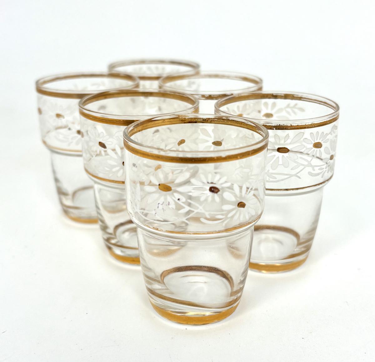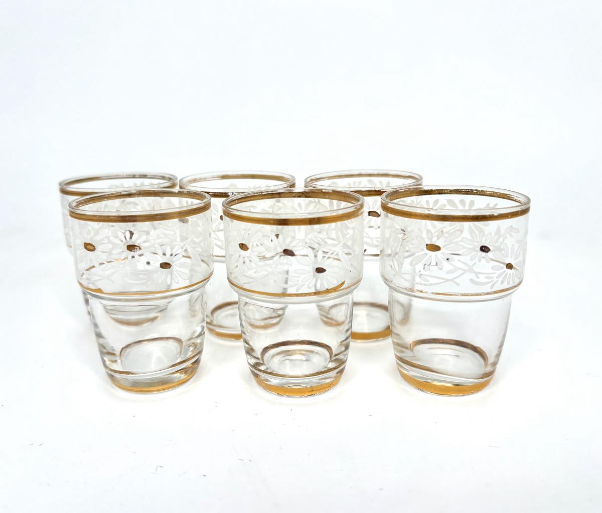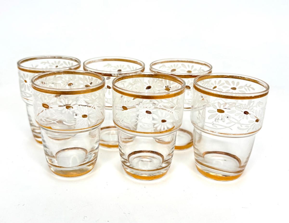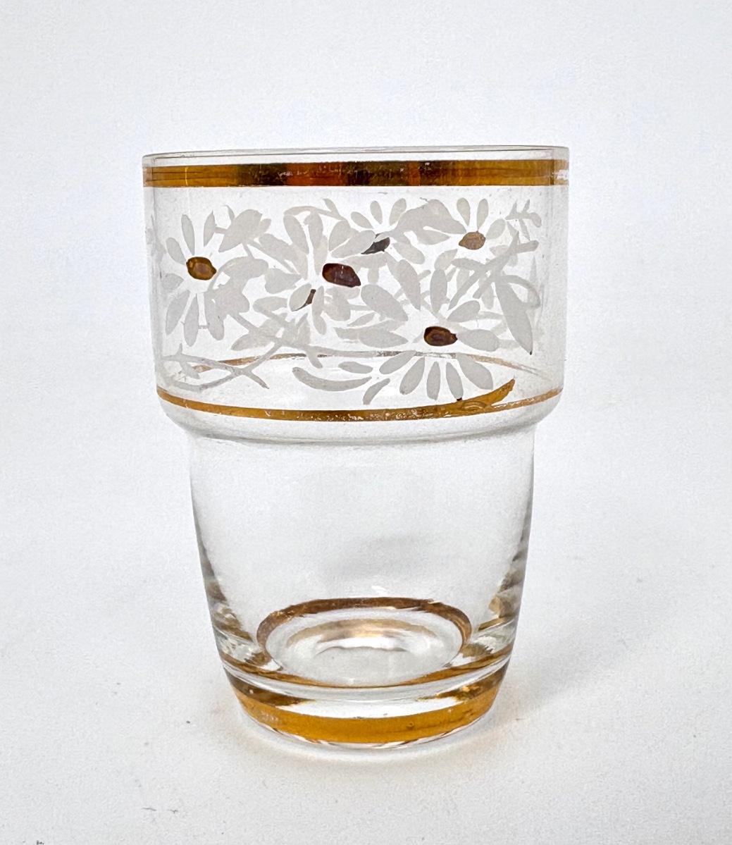 6 Vintage Belgium Hand Painted Gold and White Flower Shot Glasses