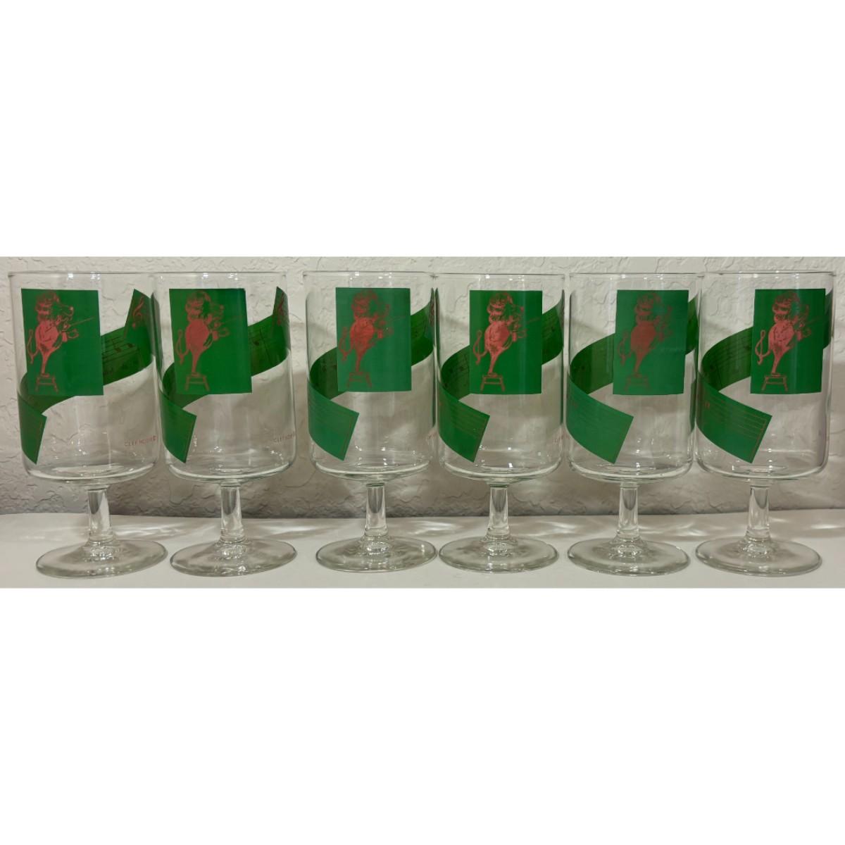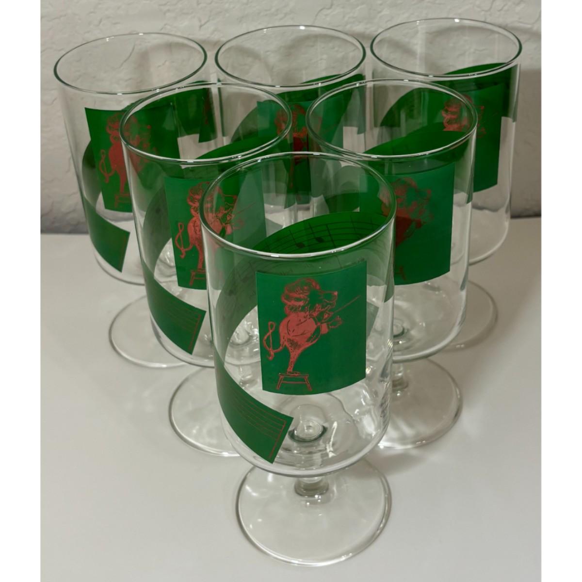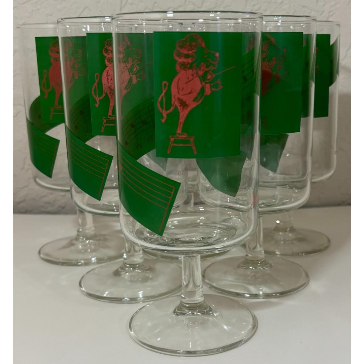 6 Vintage Clef House Music Green & Red Stemmed Glasses