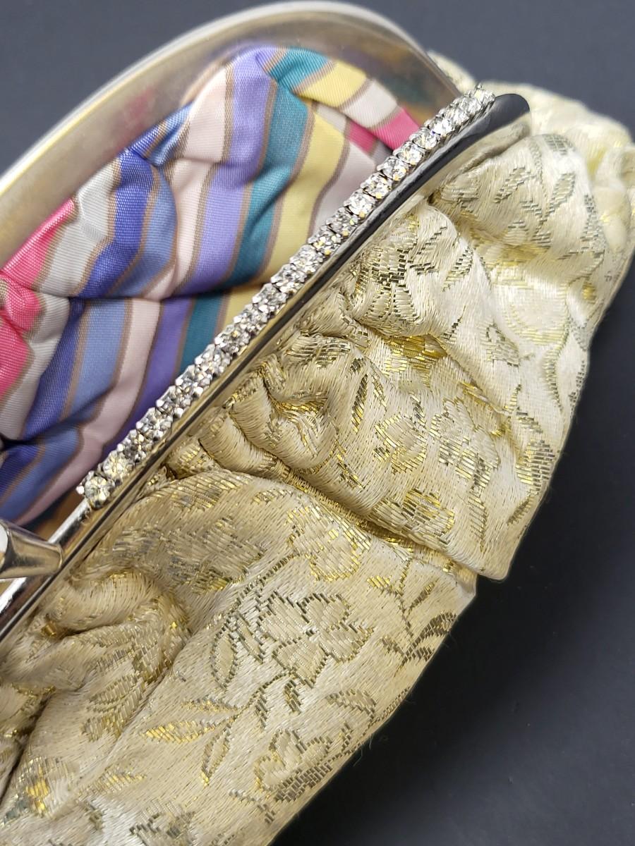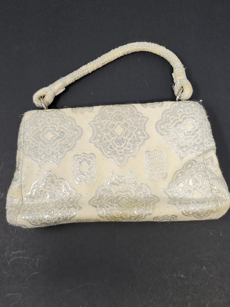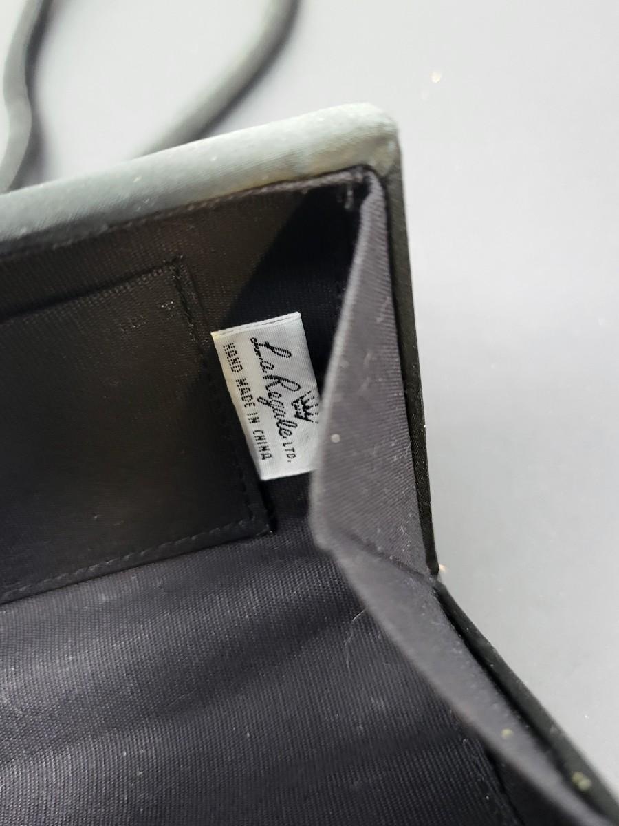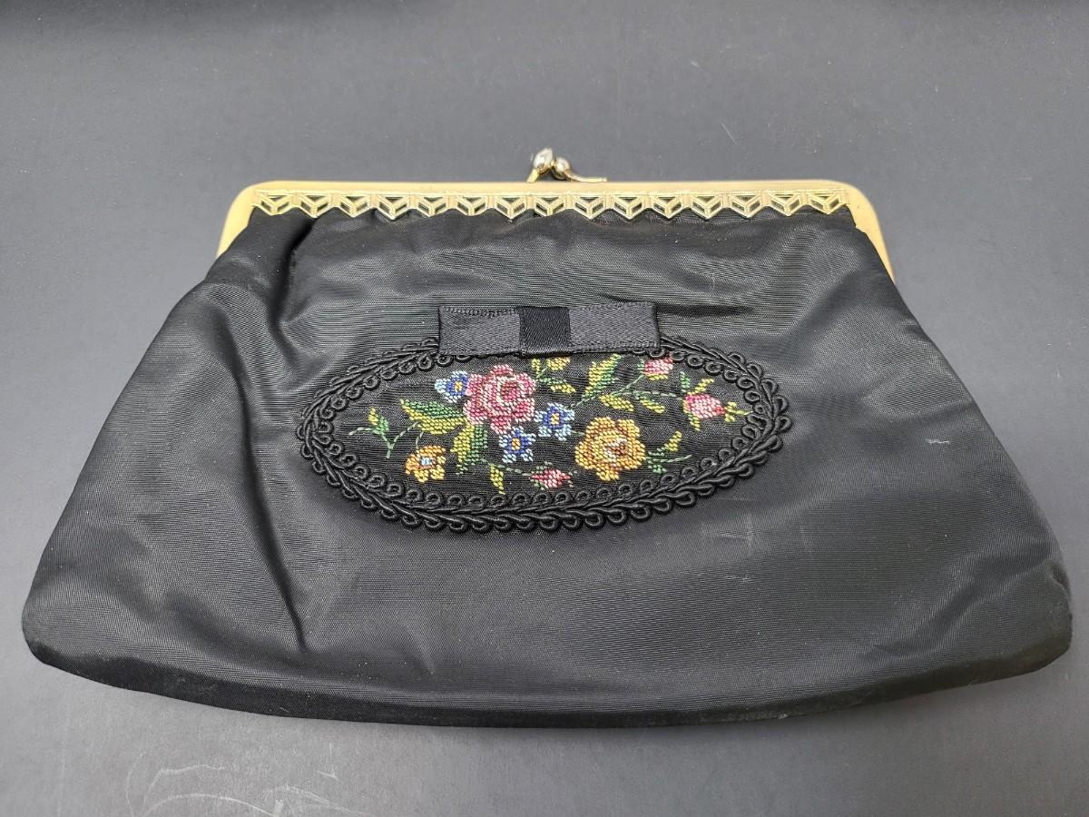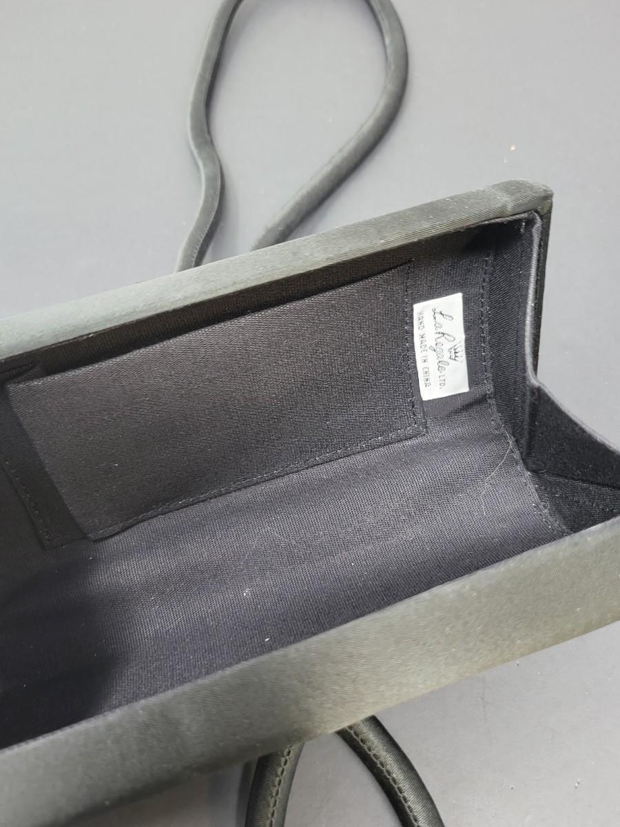 Six small evening/ocassional night out clutch purse/bags. Sizes range from 6" x 5.5" to 11" x 6". This lot includes leather, satin, embroidery, lucite, rhinestones and more.