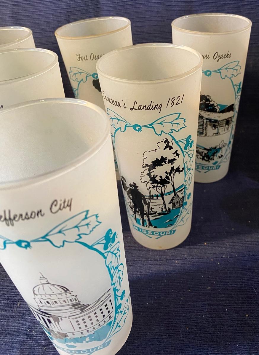 6 Vintage Collectable Frosted 16oz Missouri Glasses