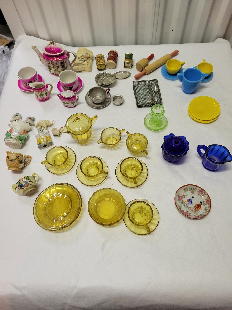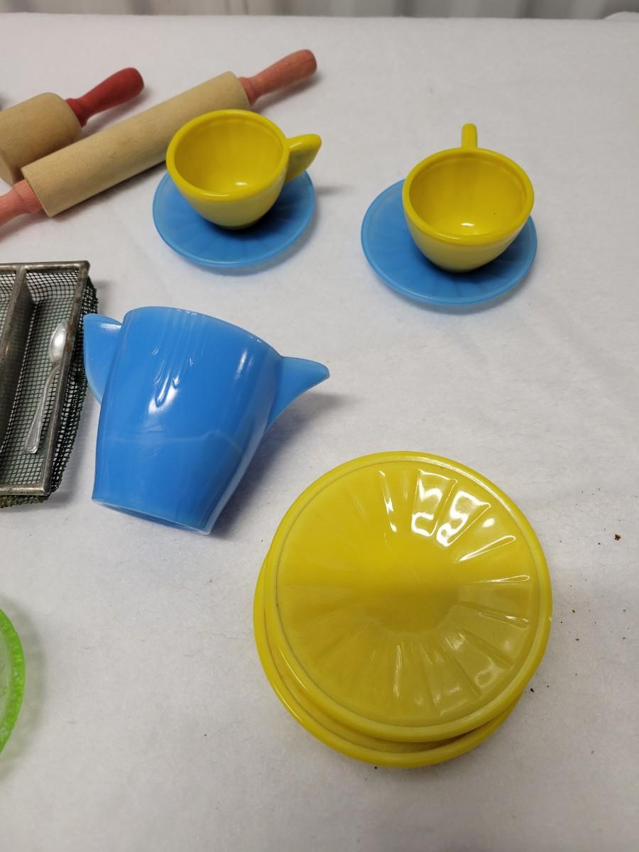 Vintage Doll House Kitchenware, Toy Tea Sets & More