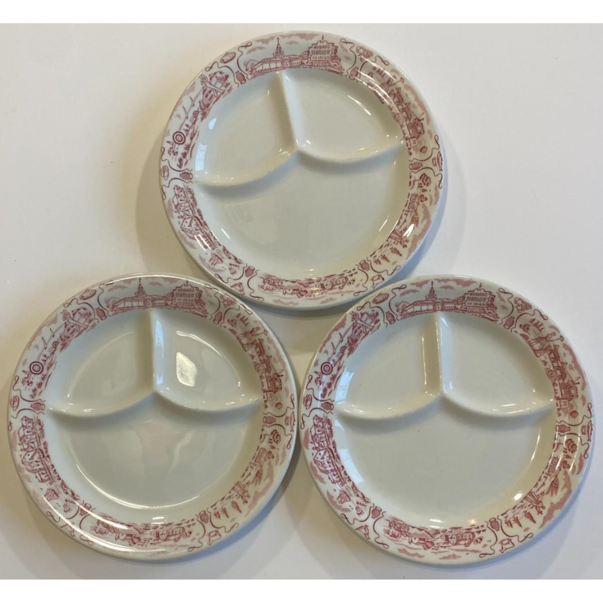 6 Vintage Howard Johnson's Restaurants Sectional Plates Red White Caribe China