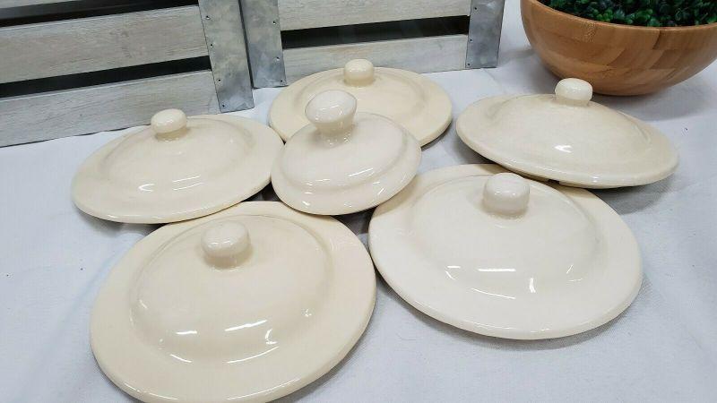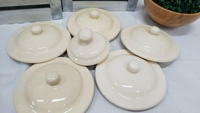 6 Vintage McCoy Cream Oven Proof Lids, Replacement Lids 5- 7" Lids, 1-5" Lid