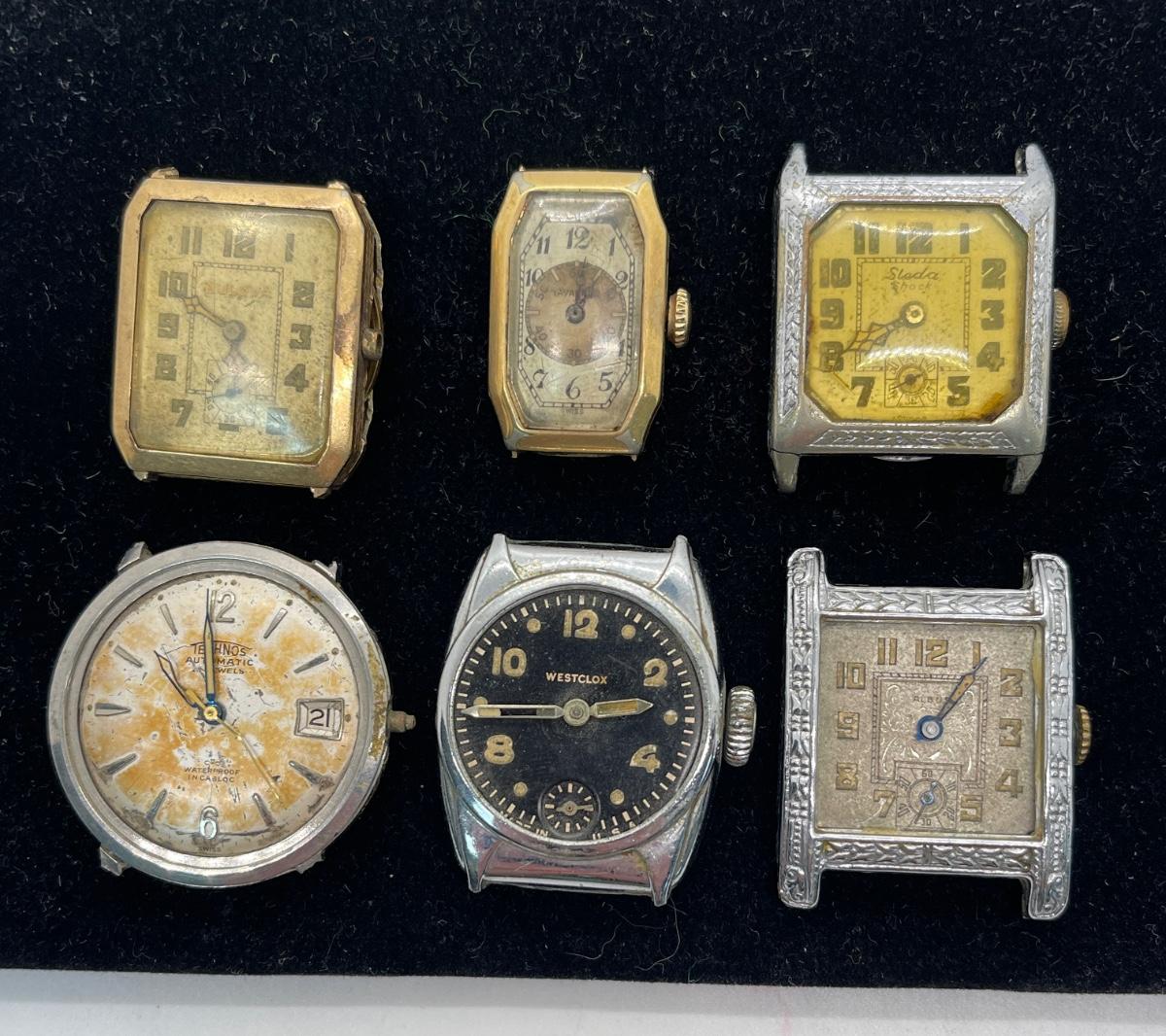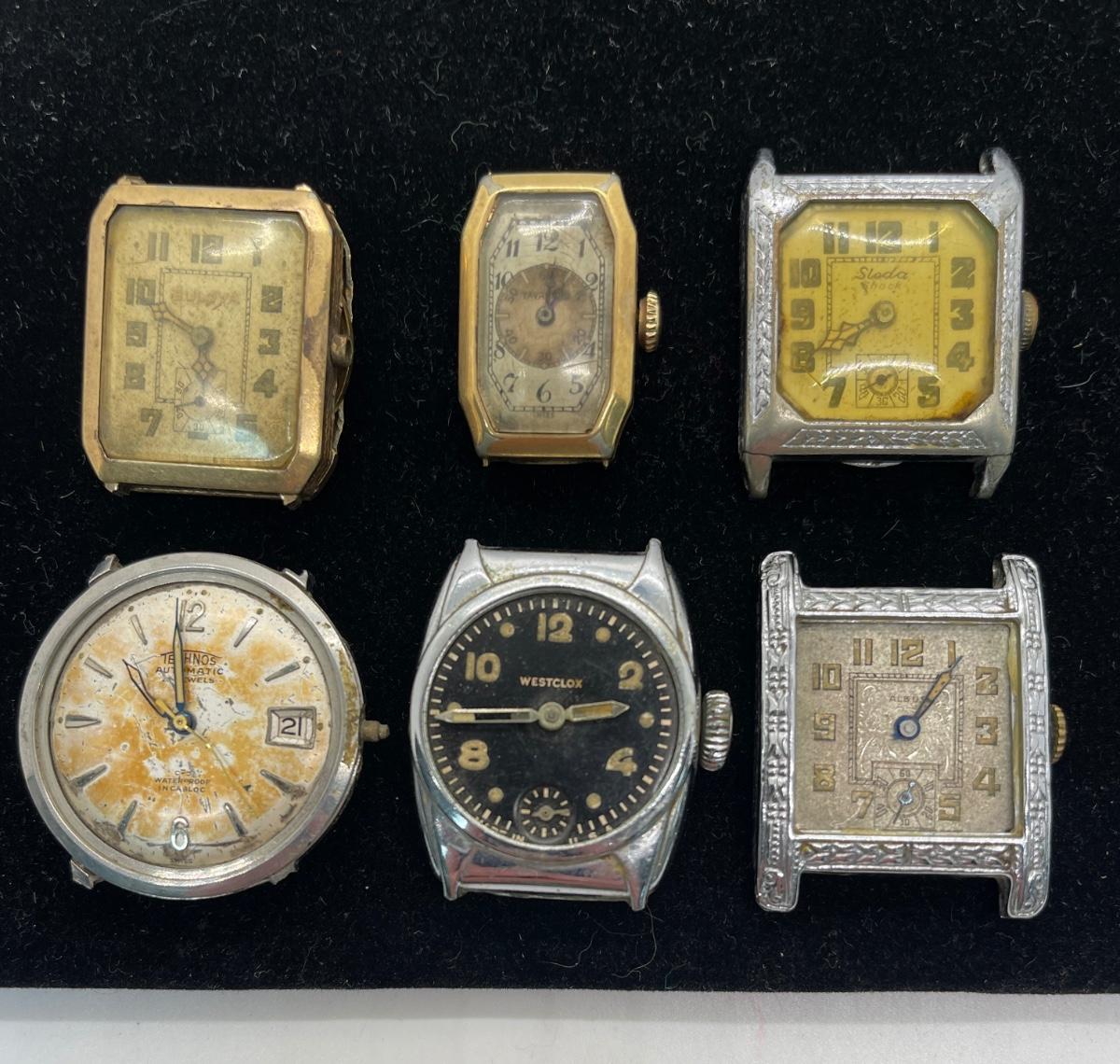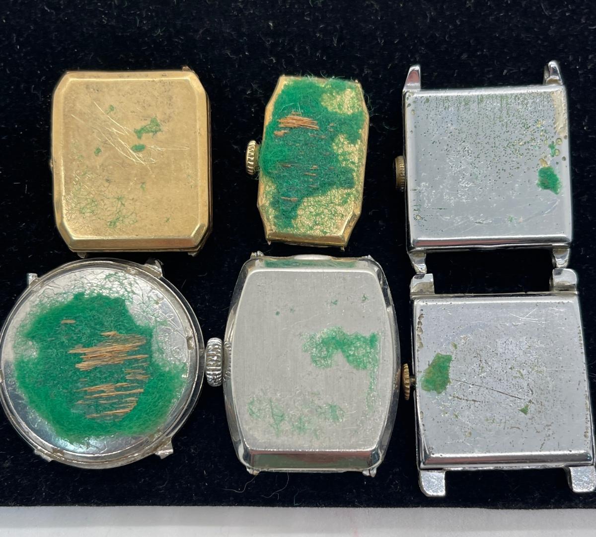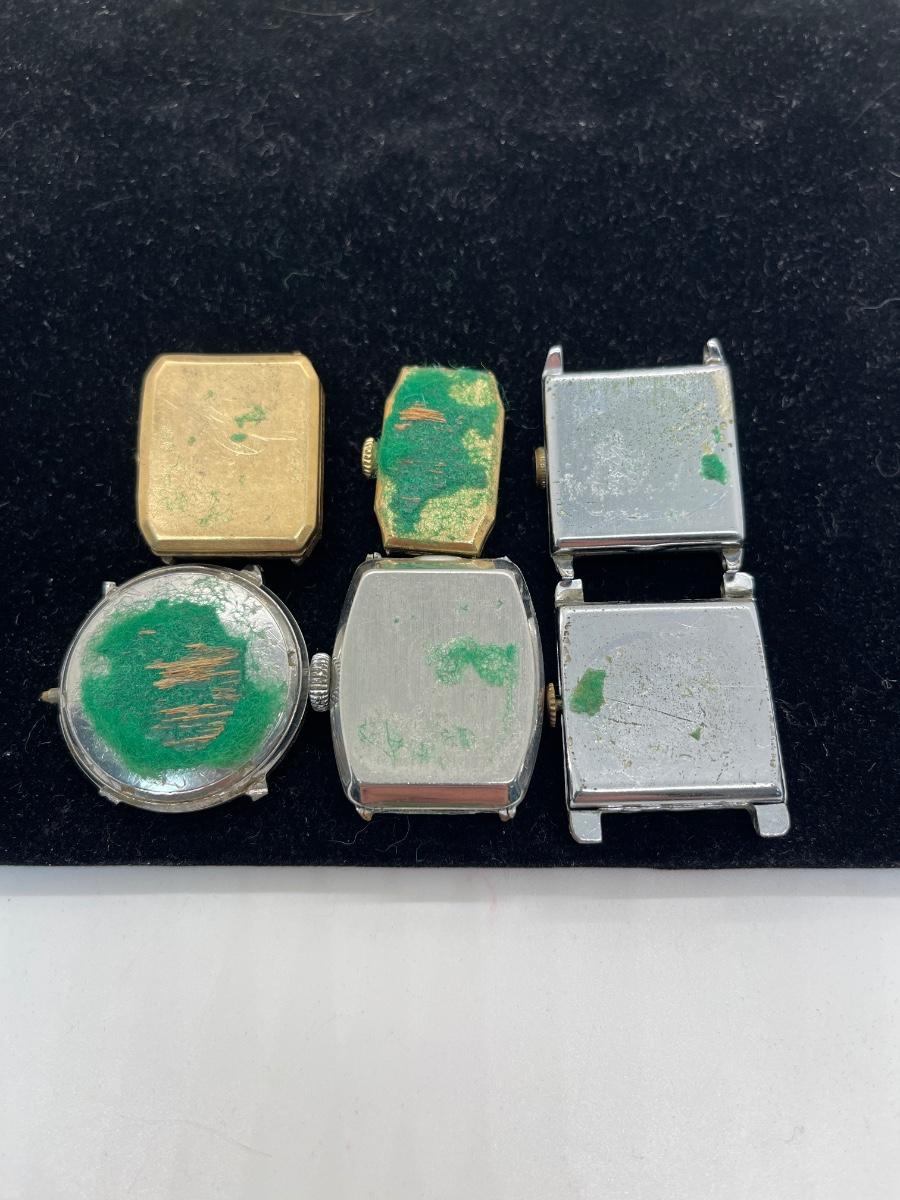 Three have bezels and three do not. They look like they’ve been removed from a green background that is still stuck on the back. May have been part of a collage art project.