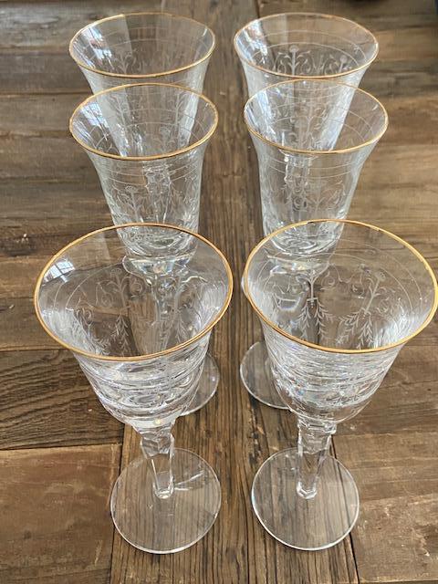 6 WATERFORD CRYSTAL CUT "CHARLEMONT" stemware ETCHED SCROLLS GOLD