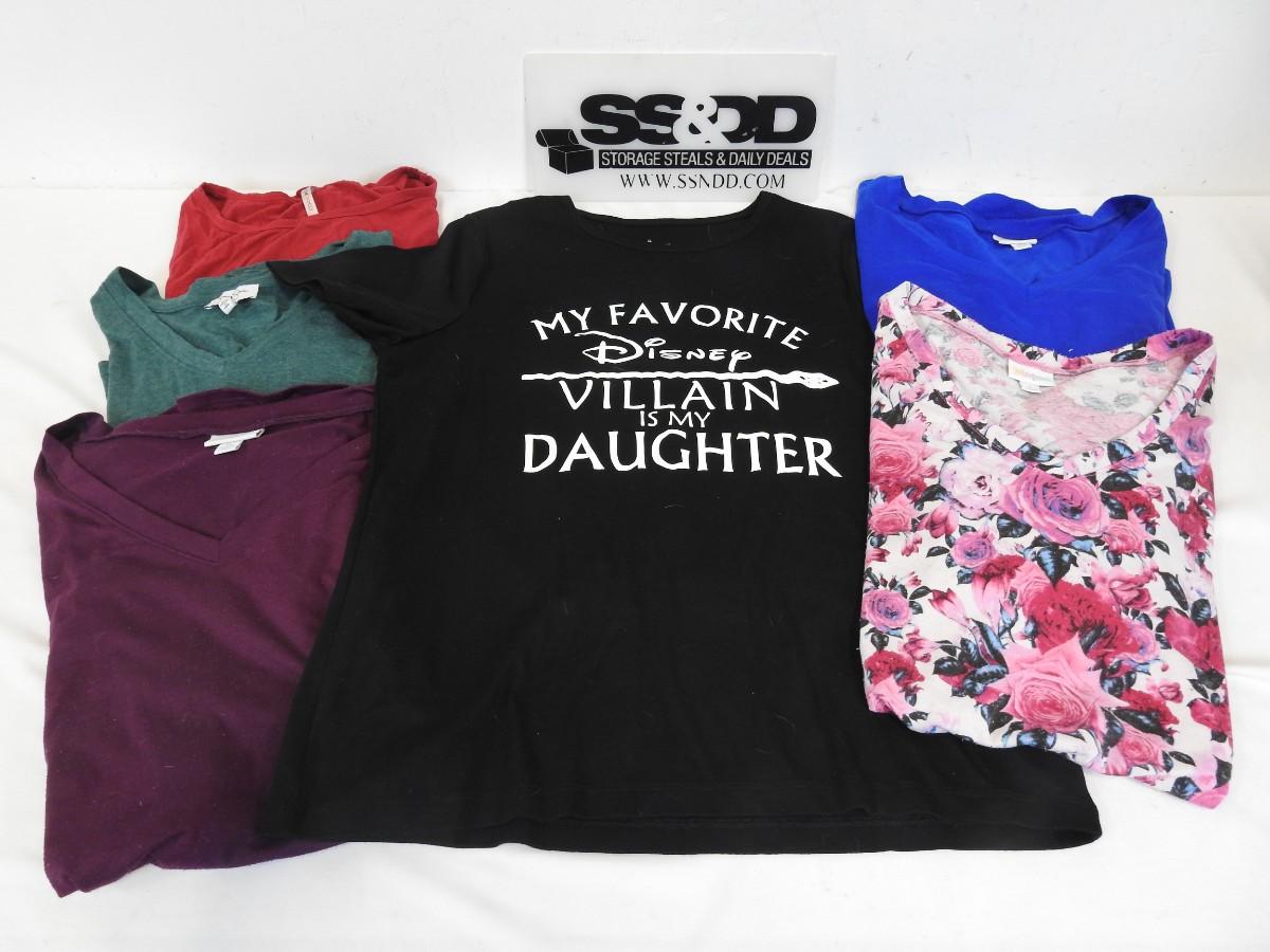 6 Women's Short Sleeve Shirts size XL & XXL: Solids, Floral, & Disney Villain Daughter