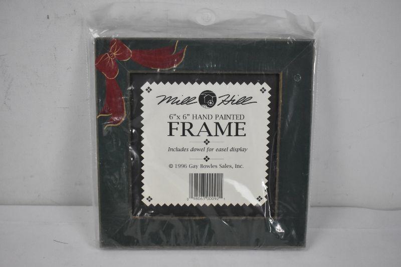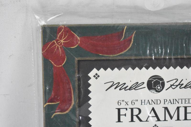 6" x 6" Wooden Frame Handpainted Red & Gold Bow - New