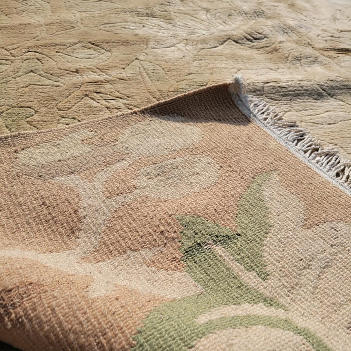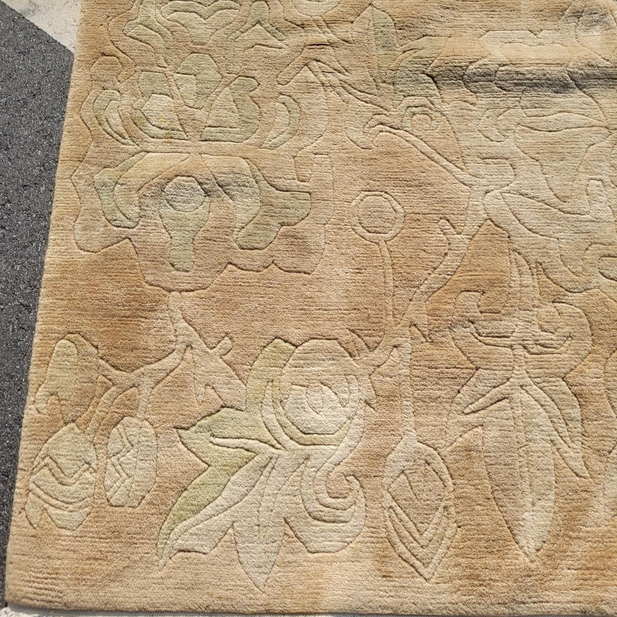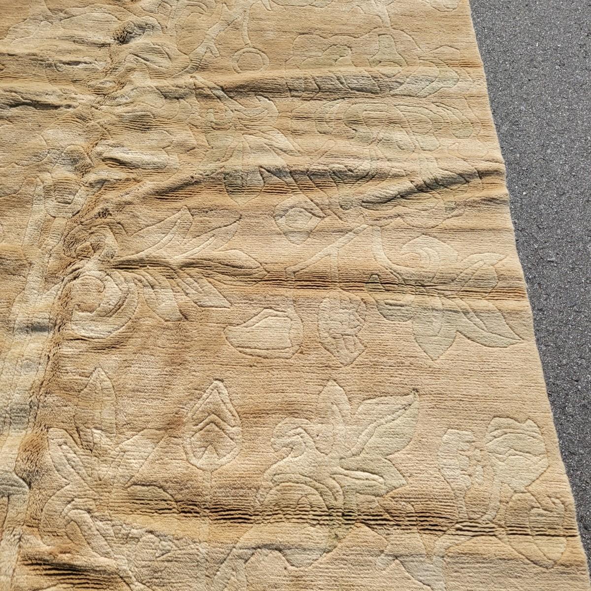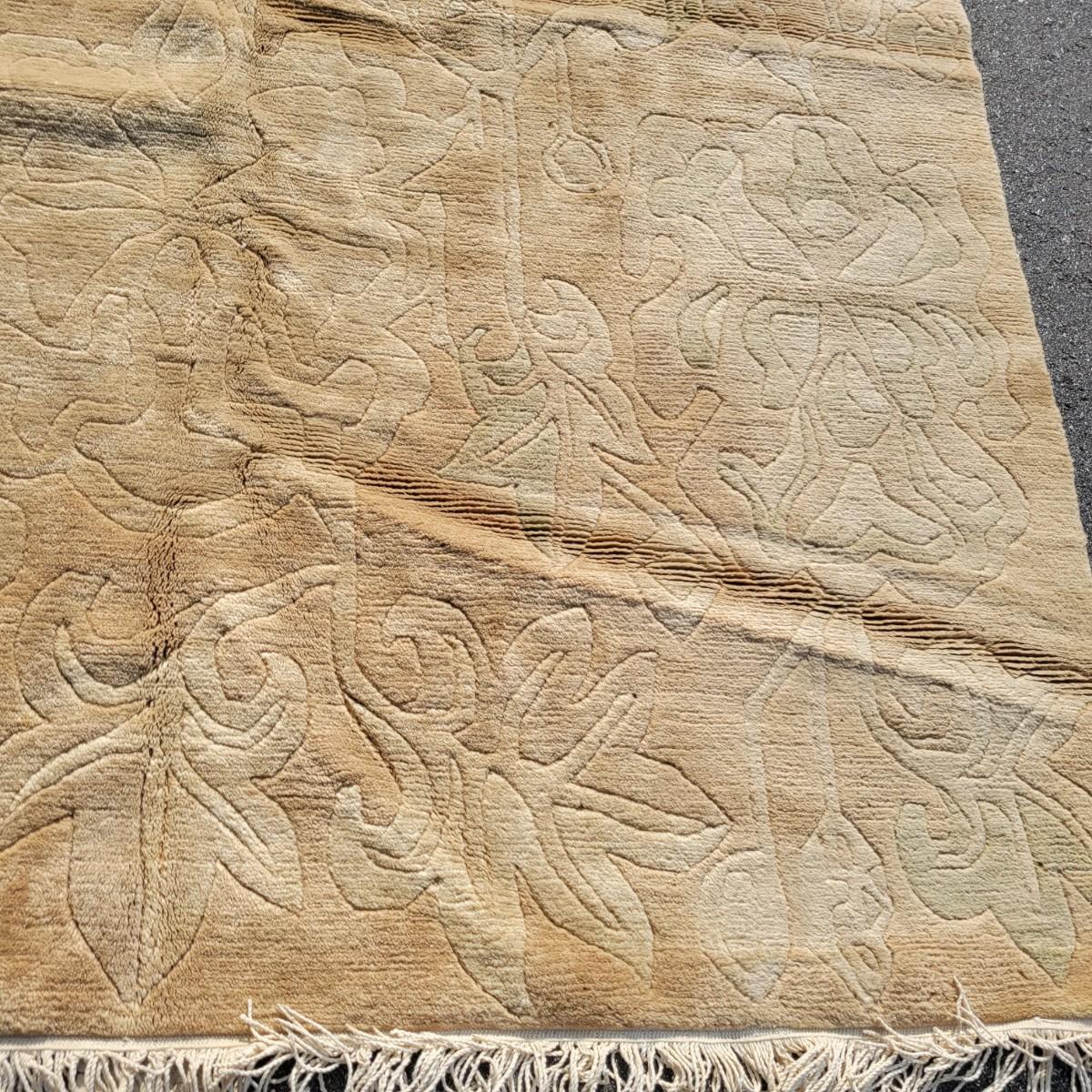 Large, muted area rug in fair condition, but has faded over time. This rug has geometric floral patterns with muted colors from fading. Rug does have an odor to it. Measures approximately 6' x 9' Local pickup only