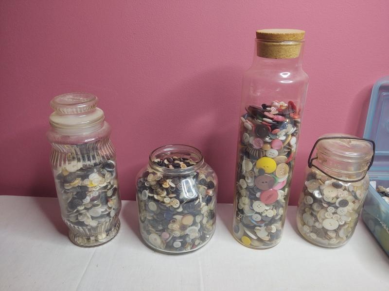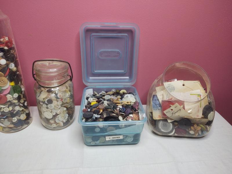 6 containers of buttons. Huge variety in this lot! Don't put your kids in timeout. Sit them down and make them sort buttons instead! Great way to pass time and instill discipline and an appreciation for the way we put our clothes on.