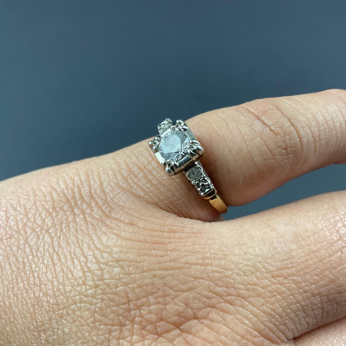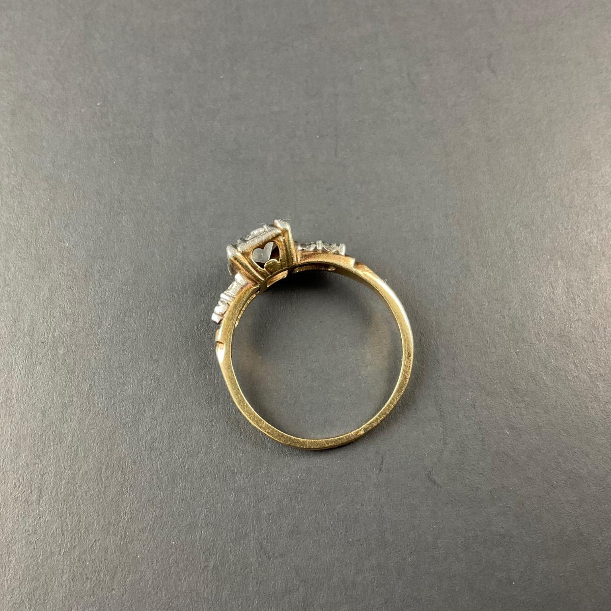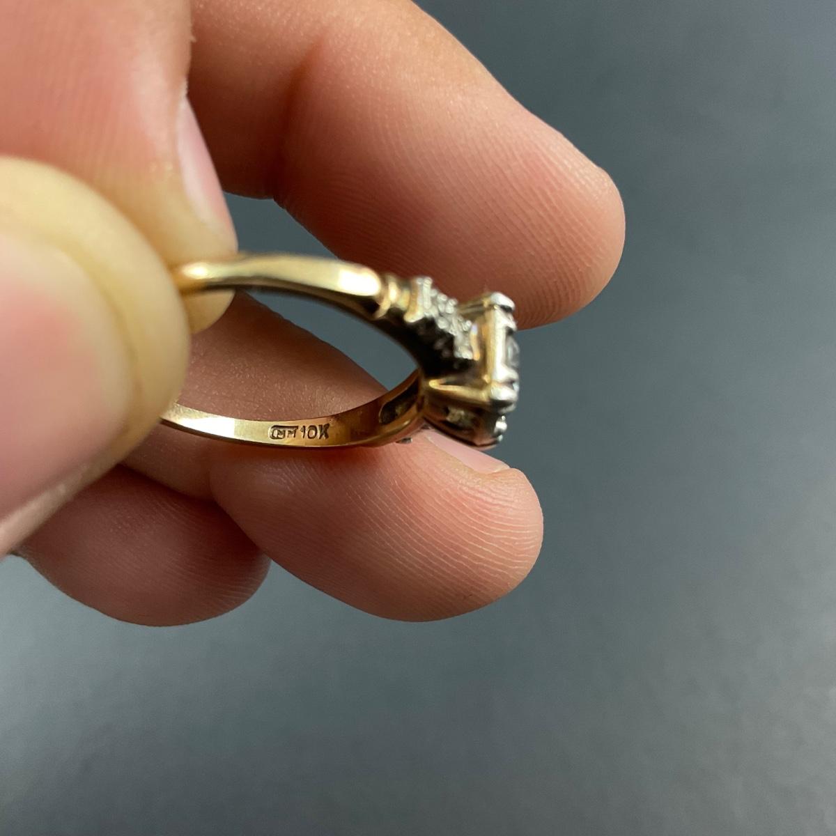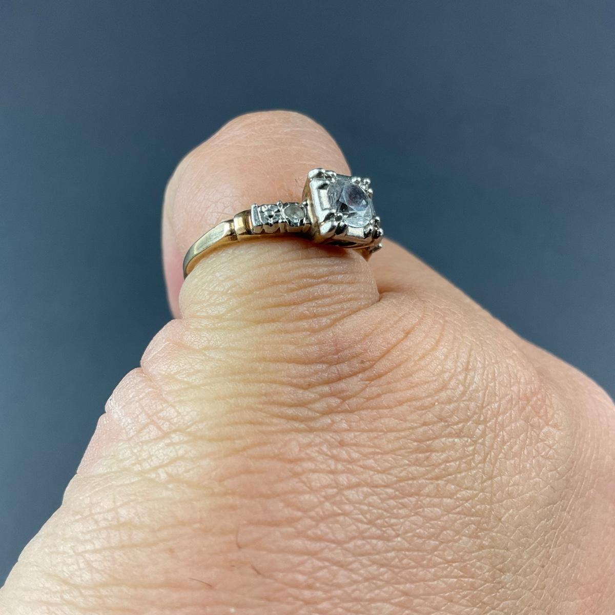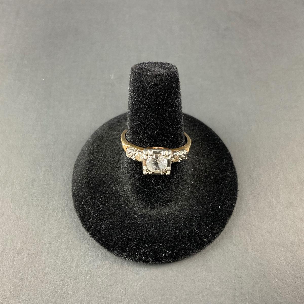 One vintage mm 10Kt gold ring size 7.5, and marked. total weight of this piece with stone is 2.7 grams. This piece does have some scuffs, scratches, marks, or slight damage, but otherwise appears to be in great shape. Please see photos for details and condition. Any condition statement is given as a courtesy to a client, is an opinion, and should not be treated as a statement of fact. Reference to condition written, oral or within a condition report shall not be regarded as a full account of condition and may not include all defects, alterations, or restorations. Absence of a condition report does not imply a lot is flawless or lacking imperfections or damage. Katherine’s Auction & Appraisal Service shall have no responsibility for any error or omission. Returns shall not be accepted on the basis of condition. ::: Shipping is available on this lot. If you require shipping you must let us know at the close of the auction. We will coordinate with you after the item has been won. Shipping fees will include insurance up to or exceeding the value of all items being mailed. If you have any questions regarding this lot please contact the auctioneer either via this website, by direct email or by phone. PICK UP TIMES and other important information can be found in the TERMS and DESCRIPTION of the auction. Please take a look for pertinent information. Thanks!