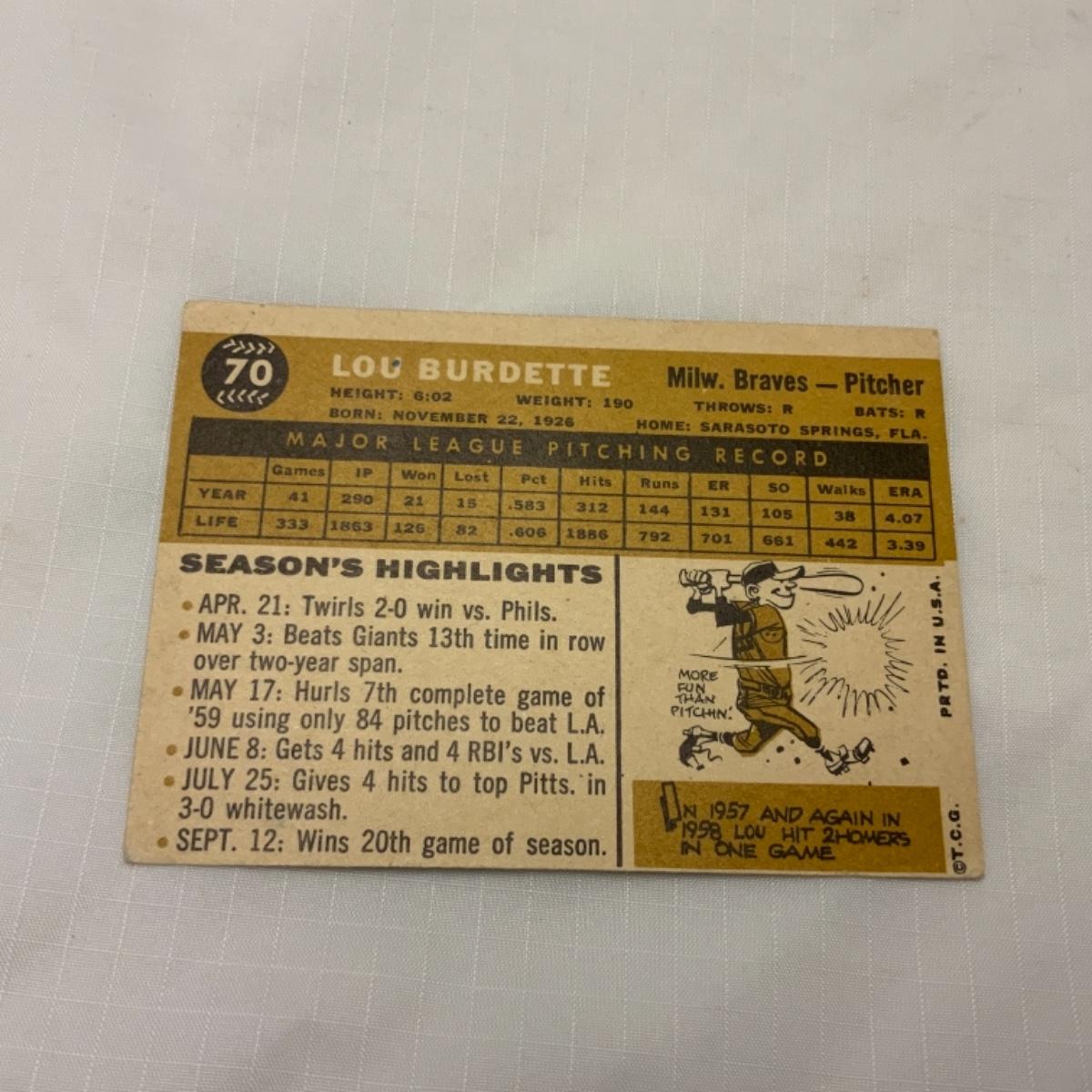 [60] VINTAGE | Lou Burdette | TOPPS Card #70 | 1960 | Milwaukee Braves