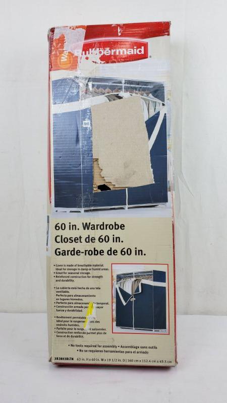 60" Wardrobe, Rubbermaid, 63" H x 60" W x 19.5" D - New, Open Box