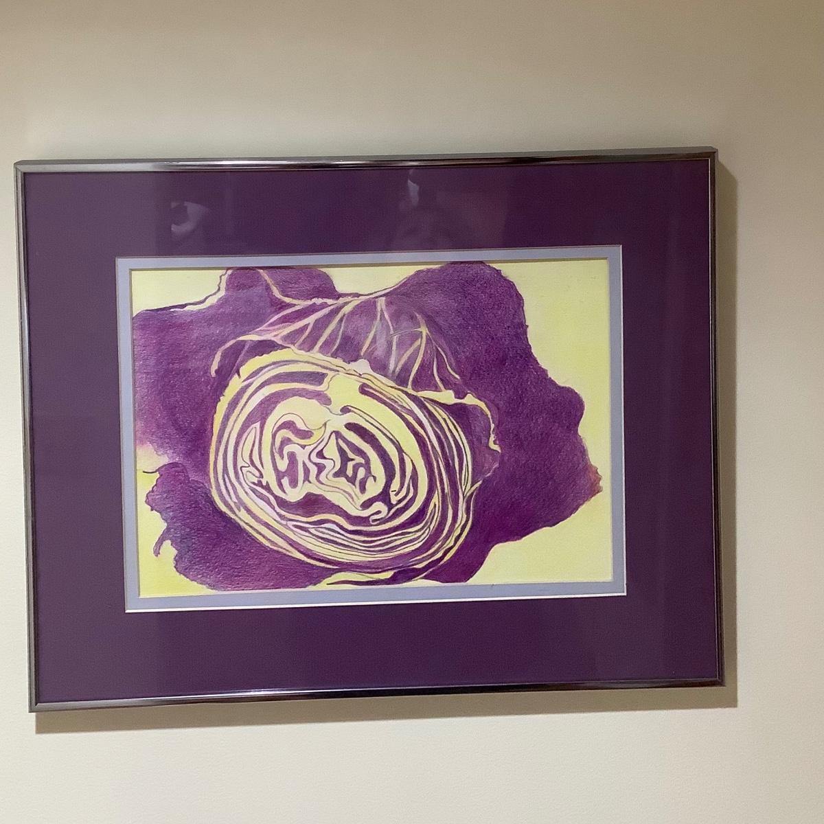 Measuring 20" x 16" high and double matted in metal frame behind glass