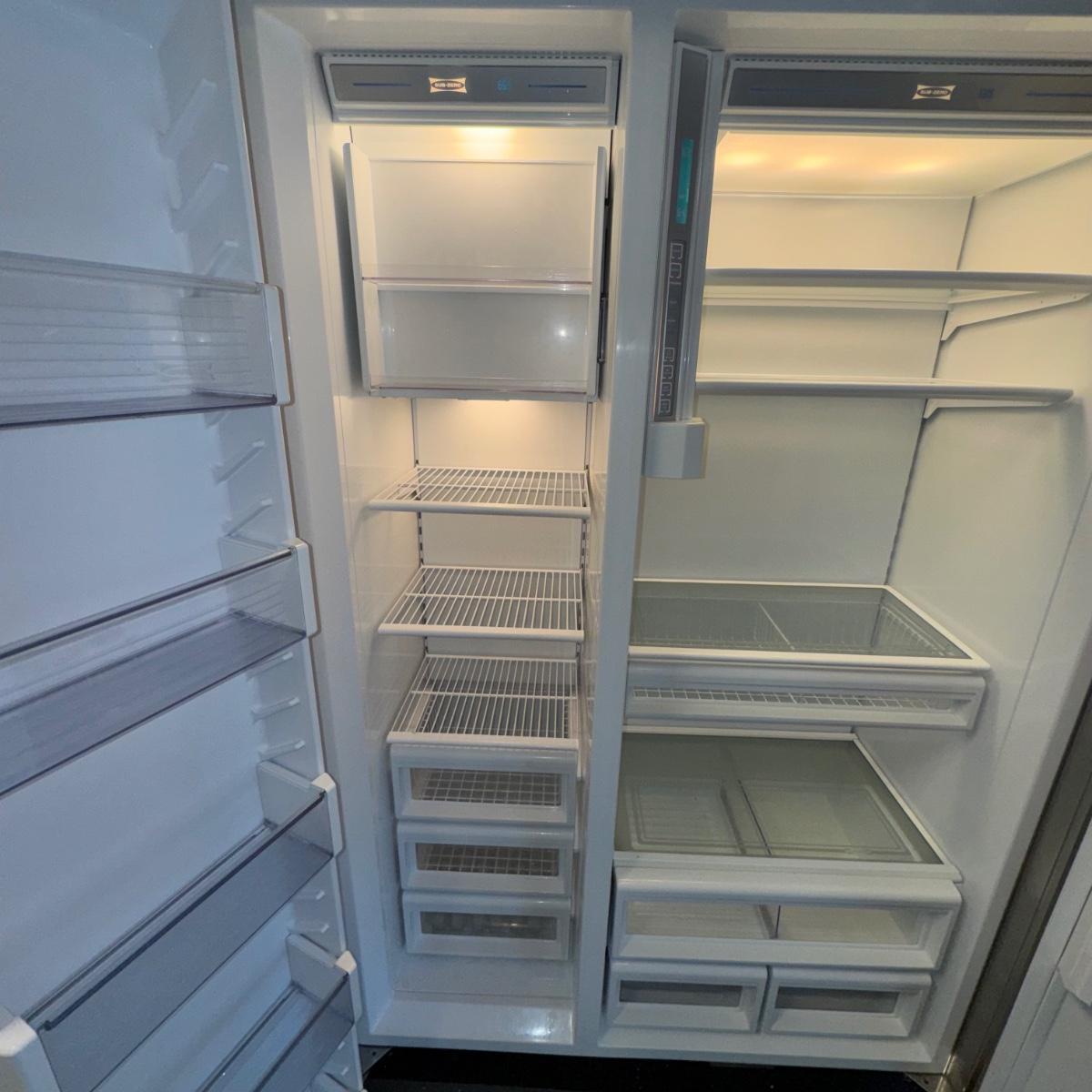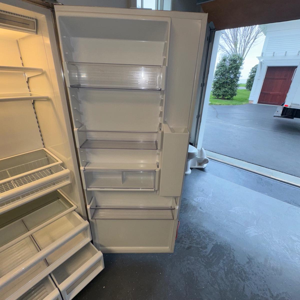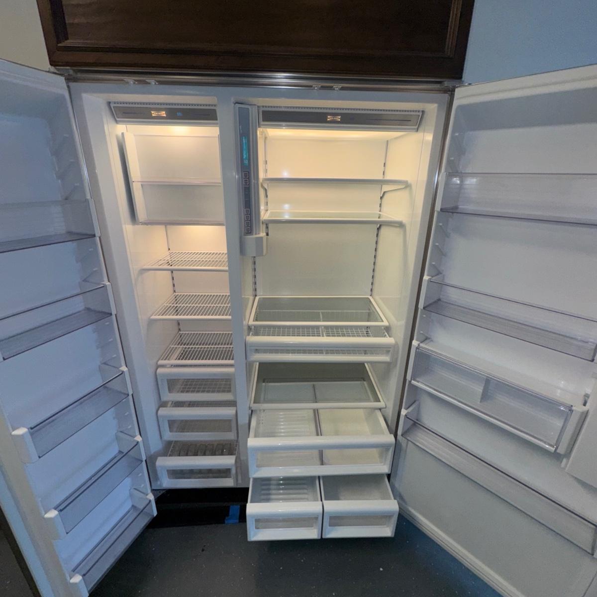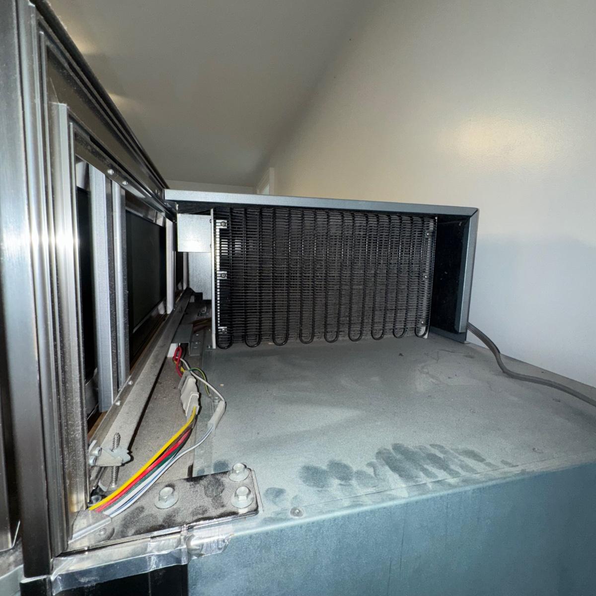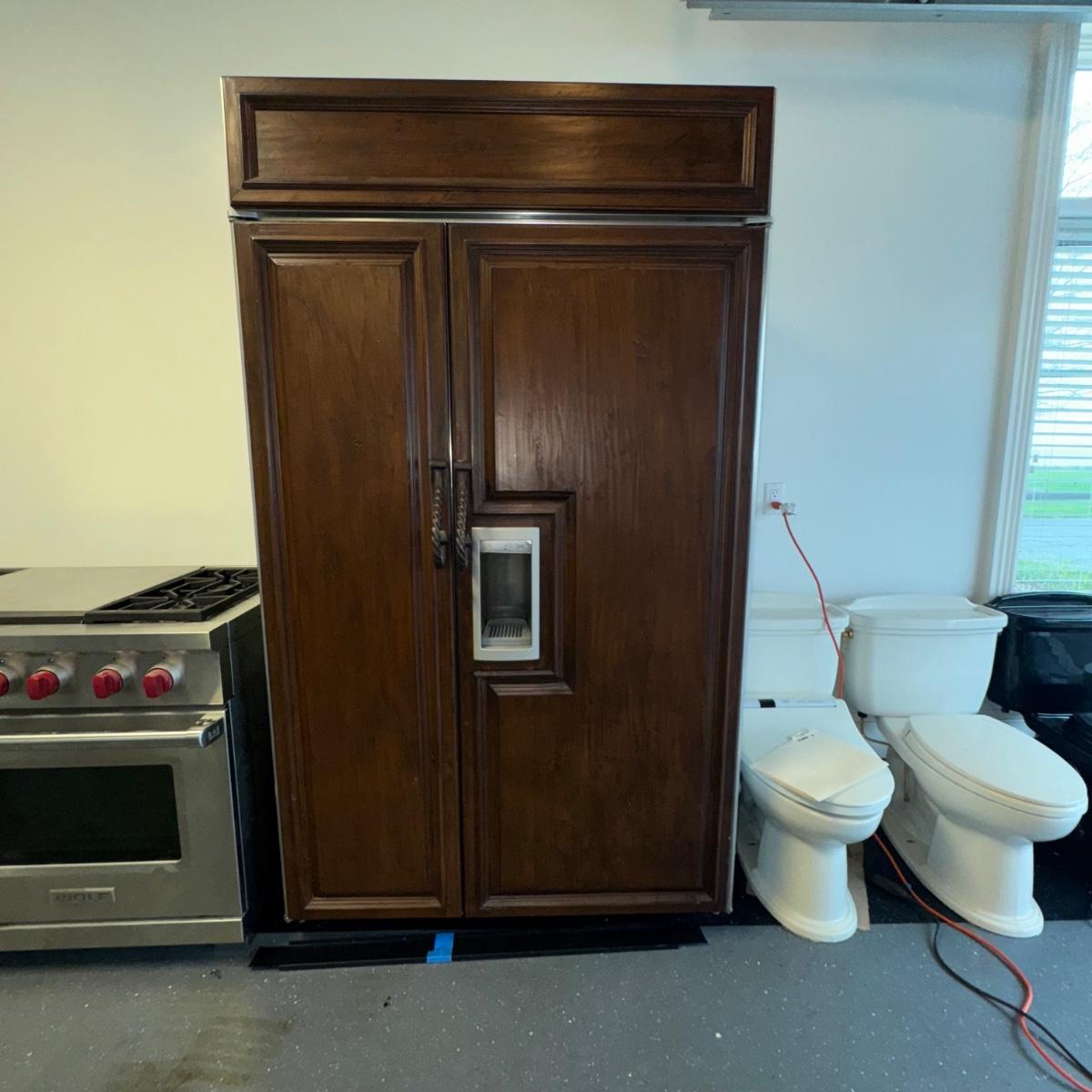 This model is in great working condition. Lightly used. Front wooden panels are removable to mount other matching cabinetry front panels.