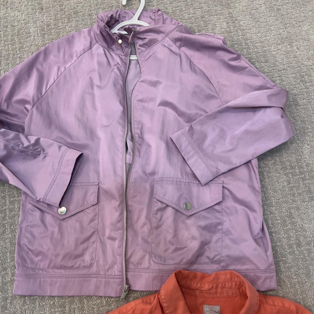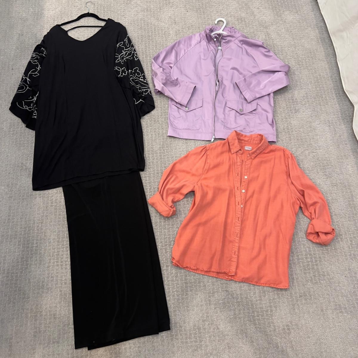 601 Chico's Purple Rain Jacket, Black and White Tunic Top and Button Up Orange Size 3