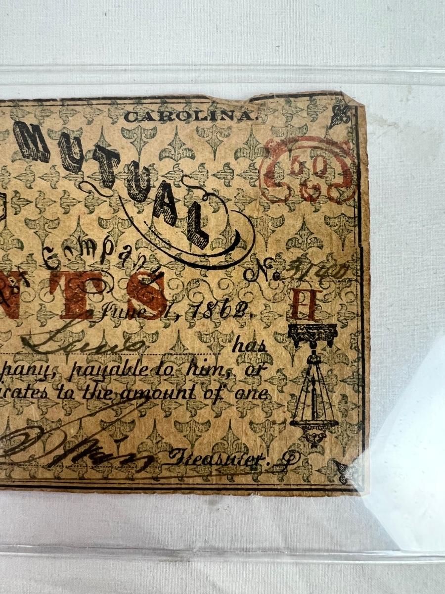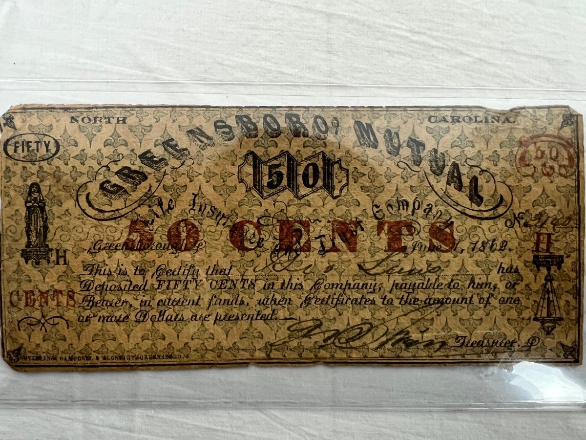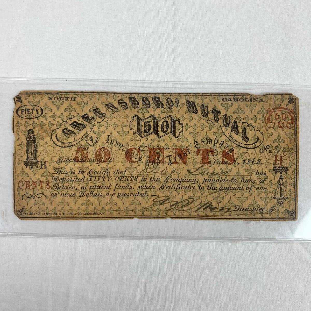 Civil War Era! 1862 50 Cents Greensboro Mutual, North Carolina Banknote