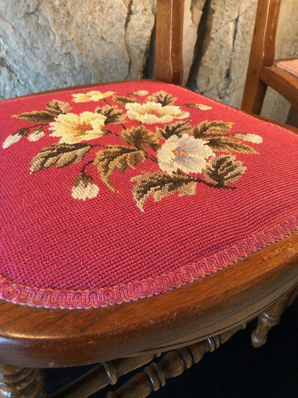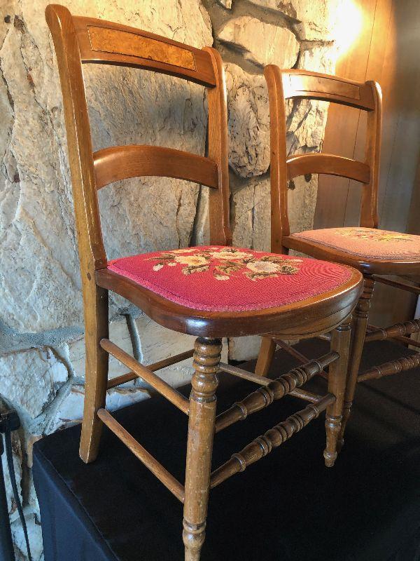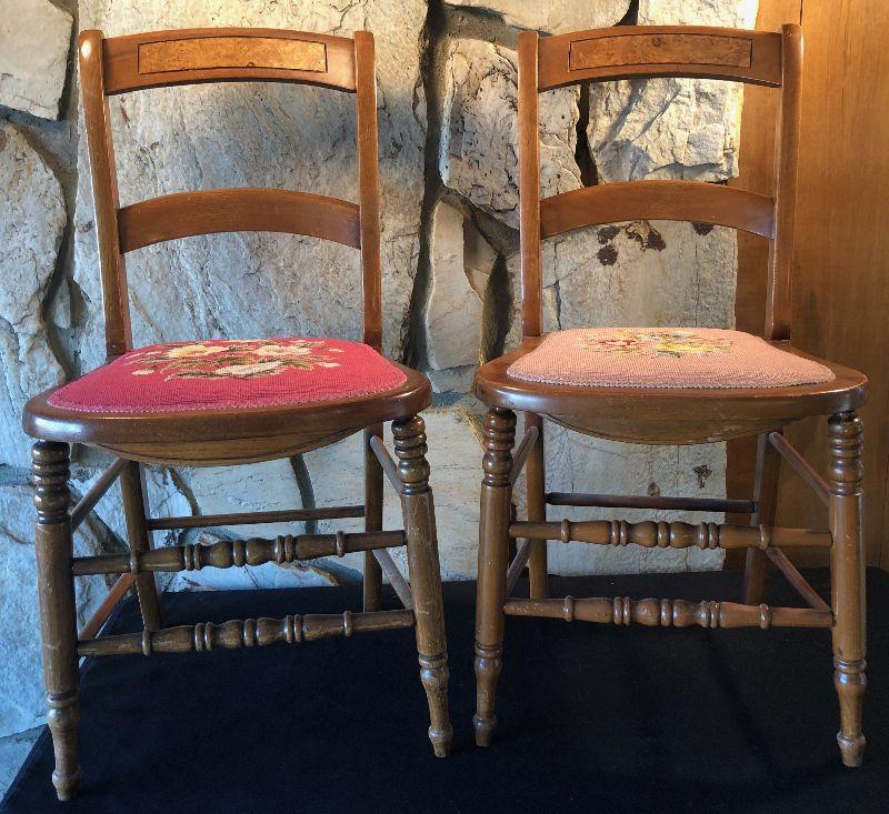 #604 2-Victorian Parlor Chairs, Needle Point Seats