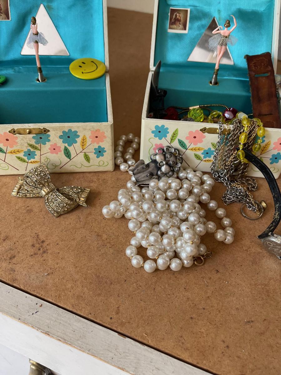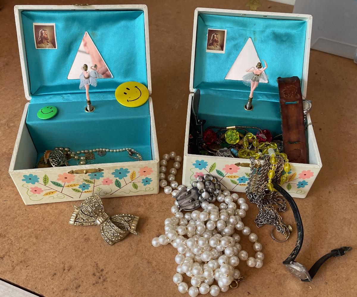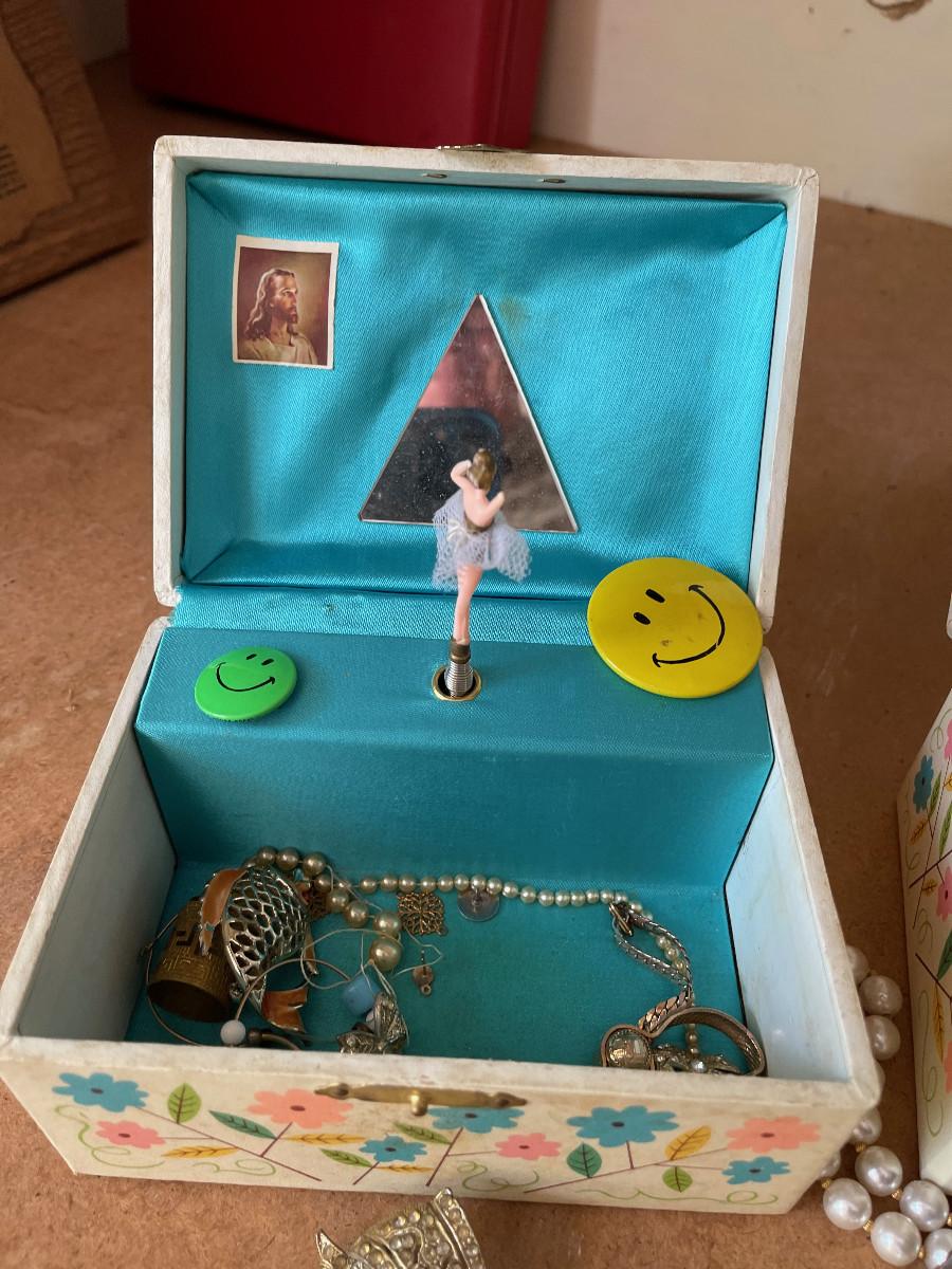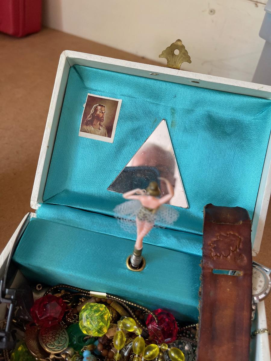 #604 G - 2 small Jewelry Boxes, Ballerina and Jesus