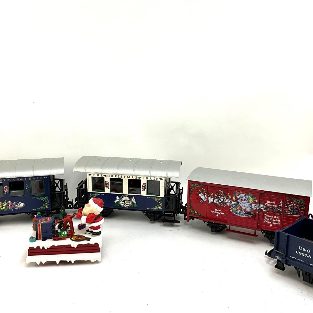 Working condition Train has 7 pieces total with the small santa piece needs a new gear. There are 21pcs of 18.5" track curved track, 9pcs of 16" curved track , 16pcs of 12" curved track , 4pcs of 12" straight tracks, 4 pcs of 4' straight tracks , and one cross section. comes with all componets for running train plus extra pieces