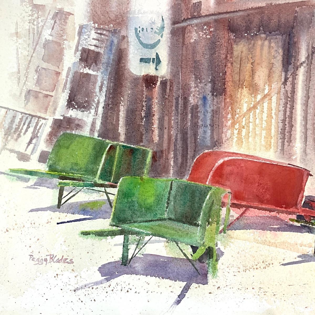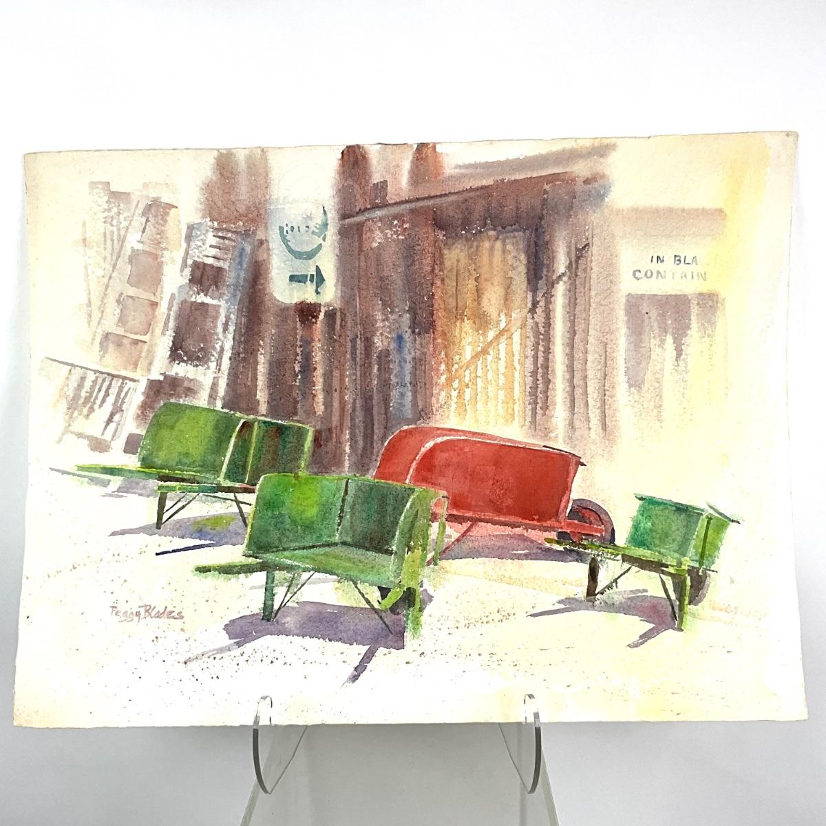 604 Original Watercolor Wheelbarrow #2 by Peggy Blades