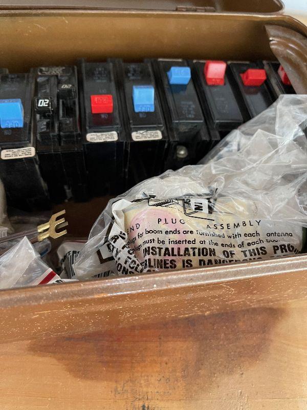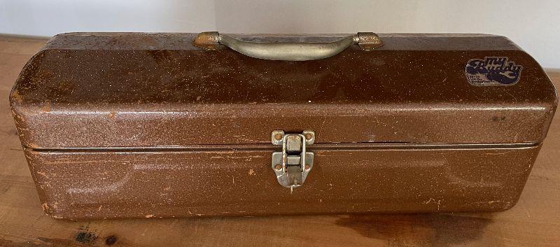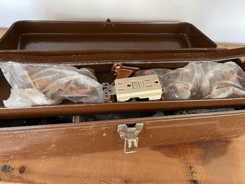 #604G Brown Metal Tool Box With Old Electrical Parts