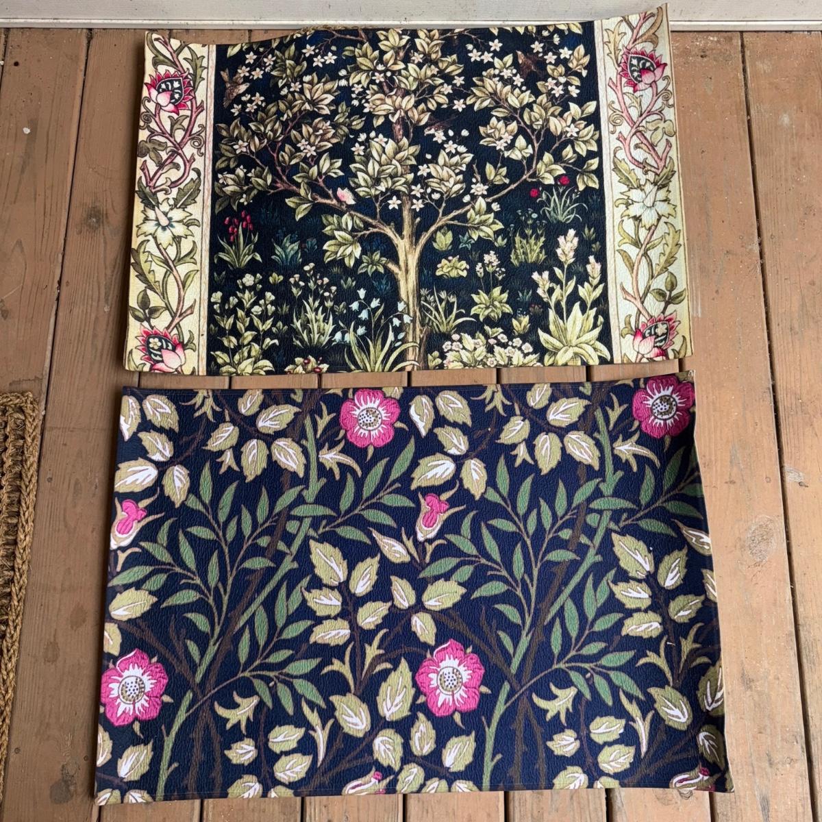 Pair of William Morris Tree of Life and Sweet Briar Door Mats. New out of box. 24” x 36” each. Please see picture for more details. Rubberized surface on bottom.