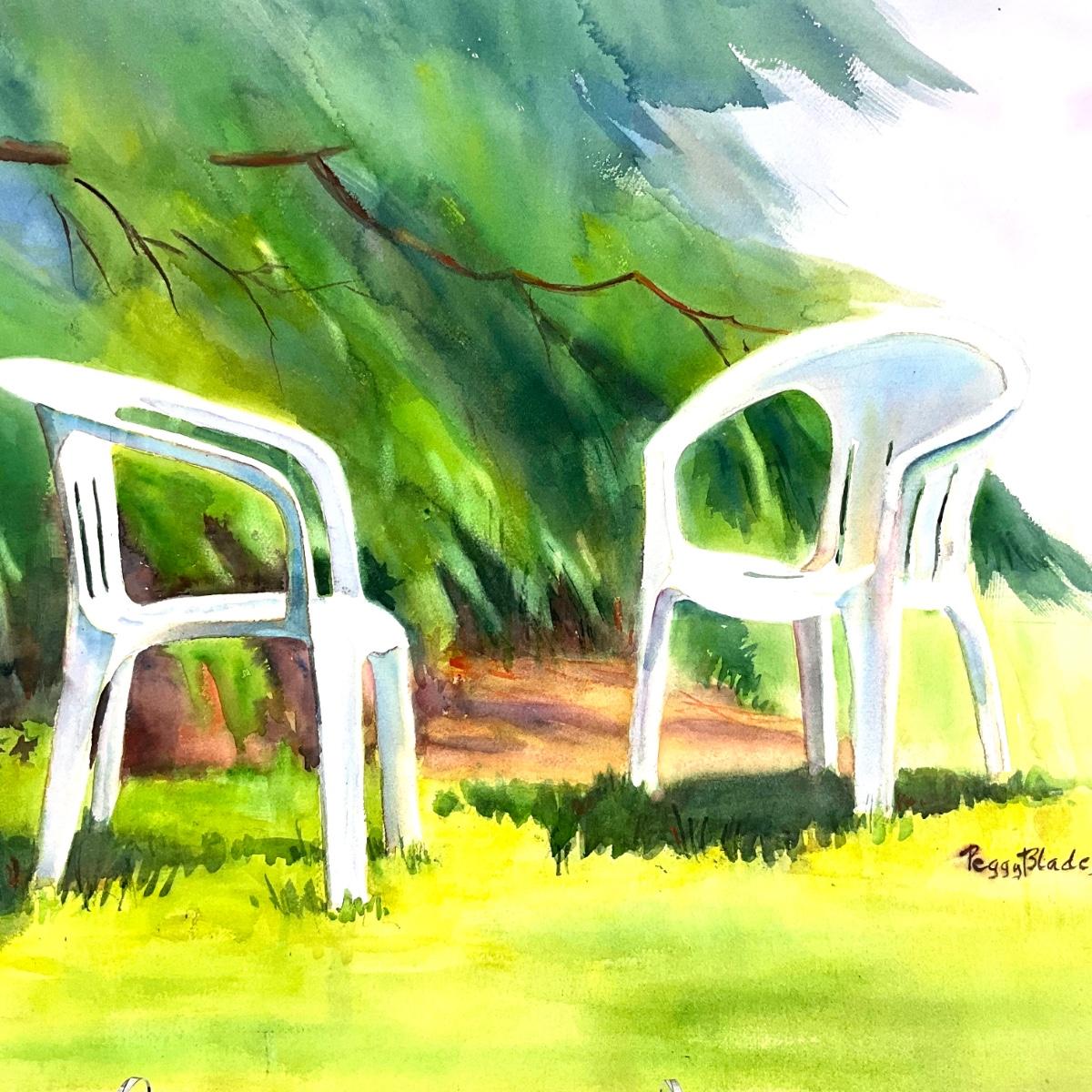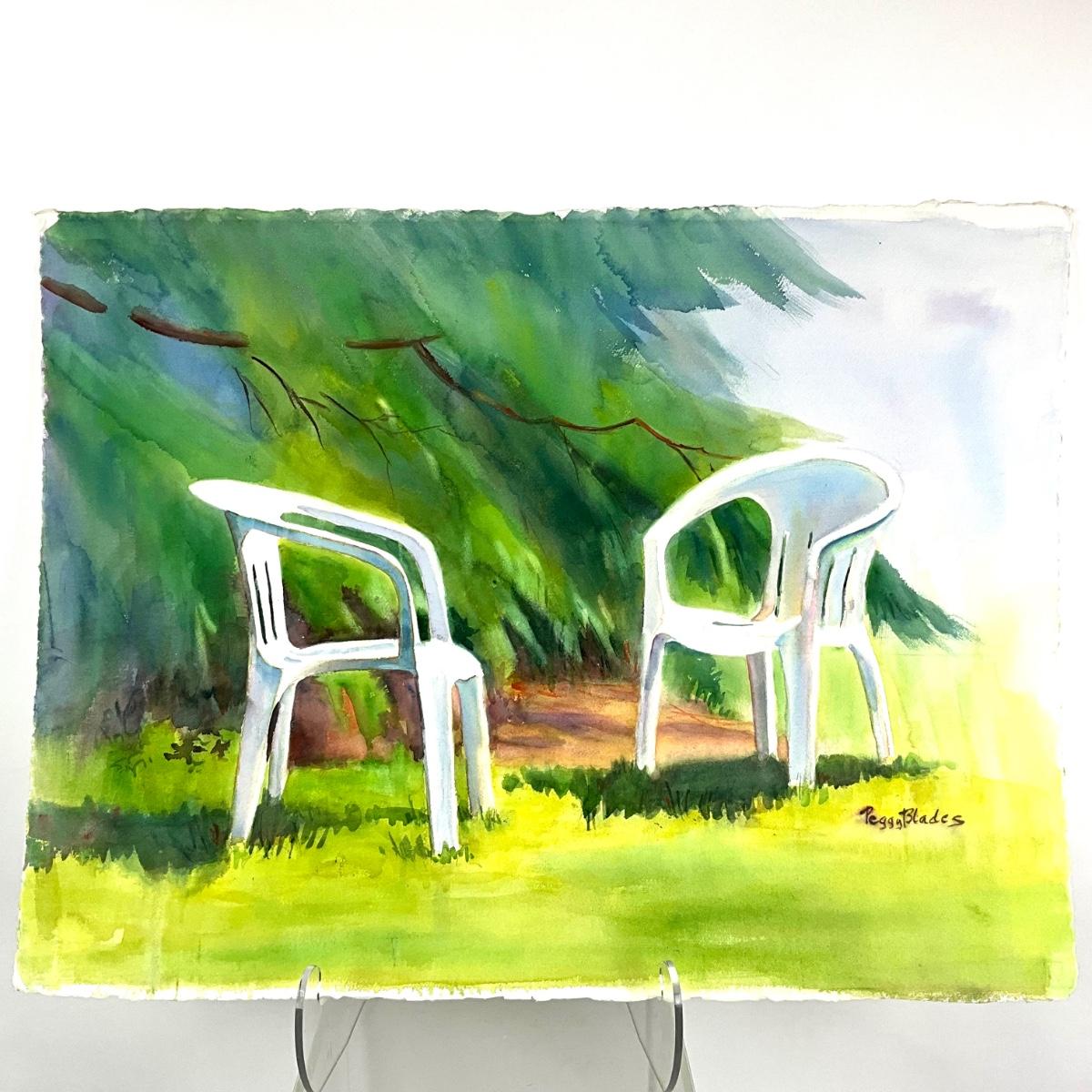 606 Original Watercolor of Lawn Chairs by Peggy Blades