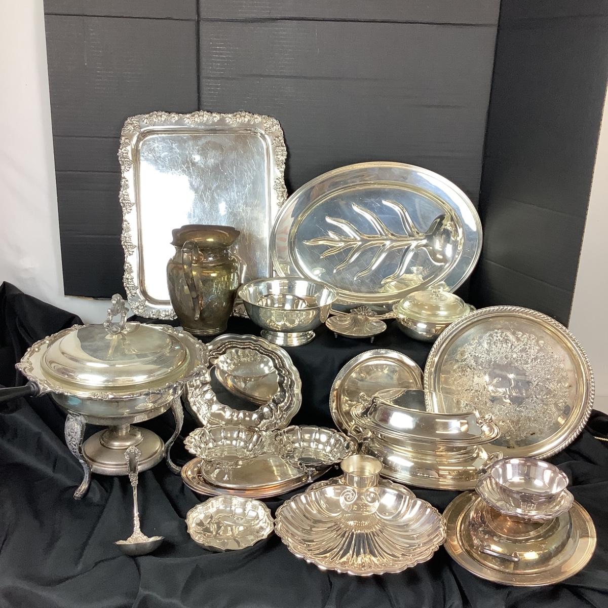 6064 Large Lot of Silverplated Serving Pieces with Extra Glass Liners