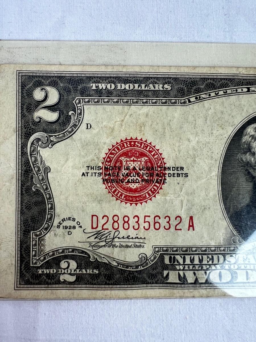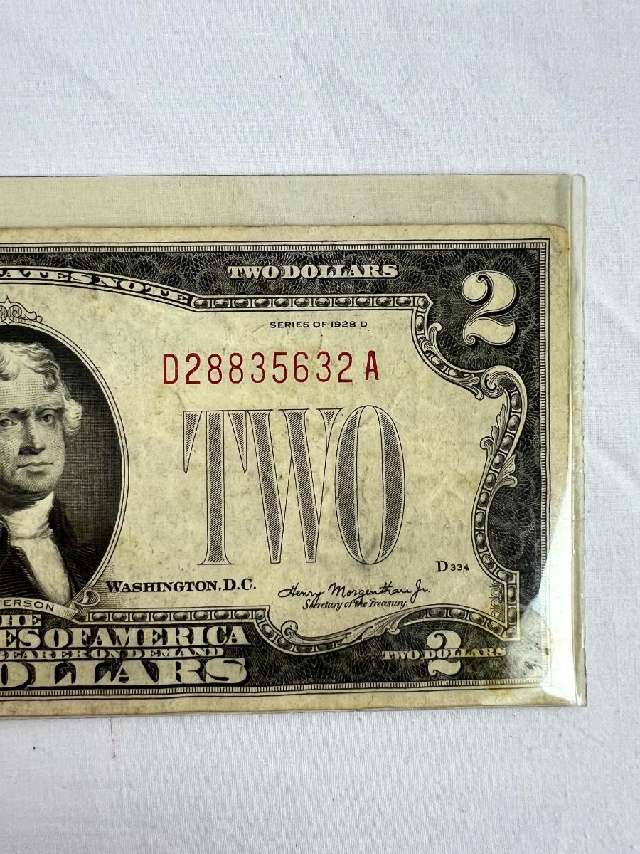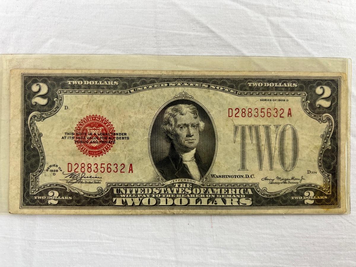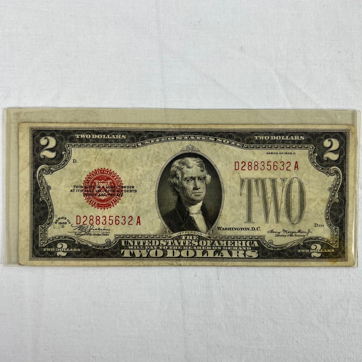 607  Series 1928-D Two Dollar Bill U.S. Legal Tender Note Red Seal