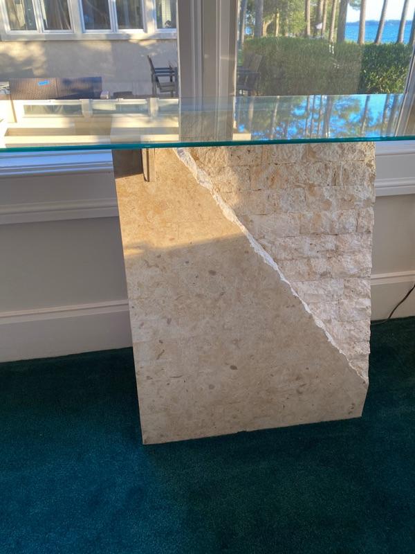 Beautiful Console Table with glass top - measures 52” W x 16”D x 26” T ( has slight damage, see picture )