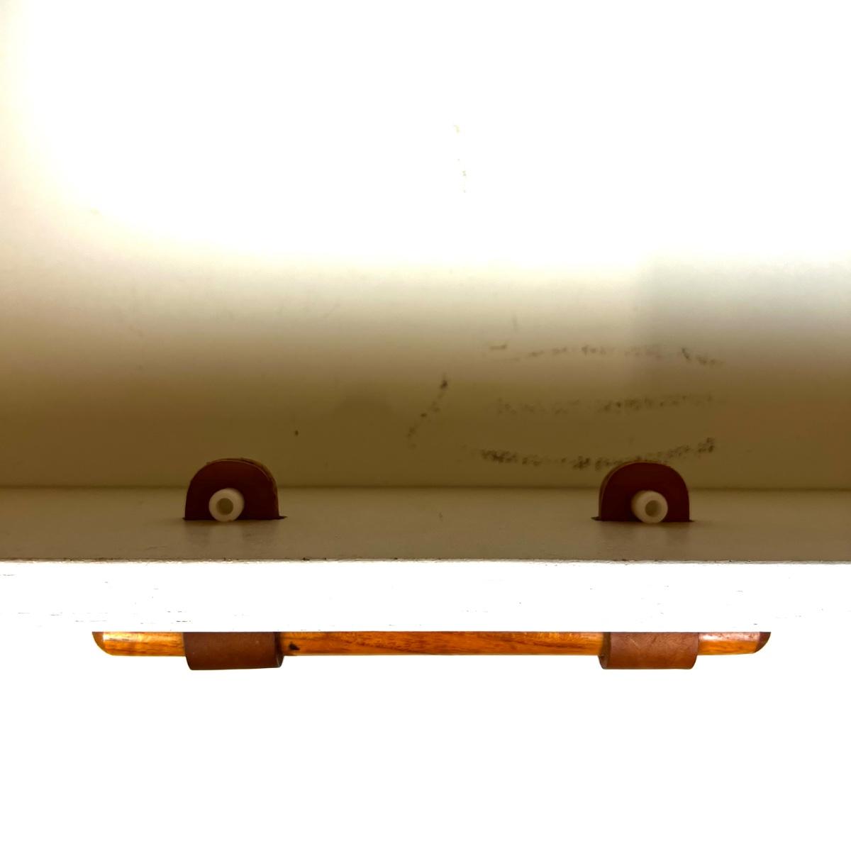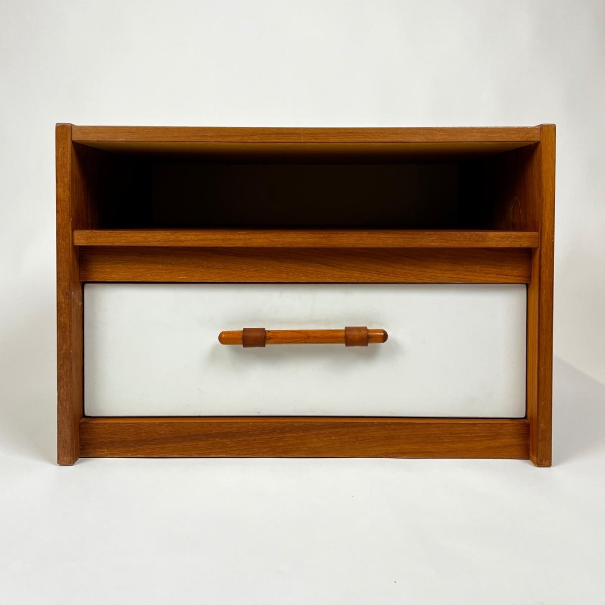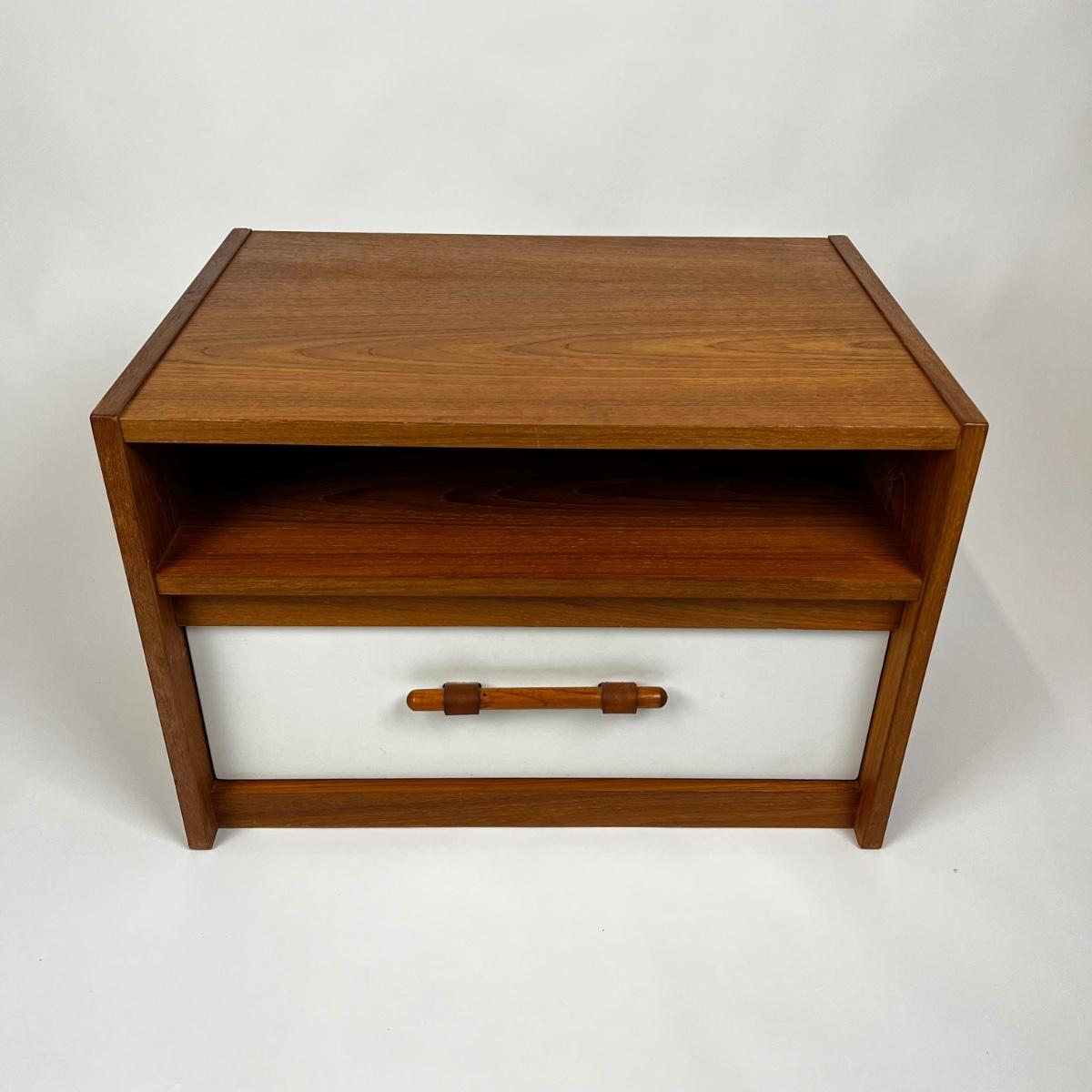 Night stand comes with a white drawer with genuine leather holding in the pull handle, with a white backsplash it upper shelf.