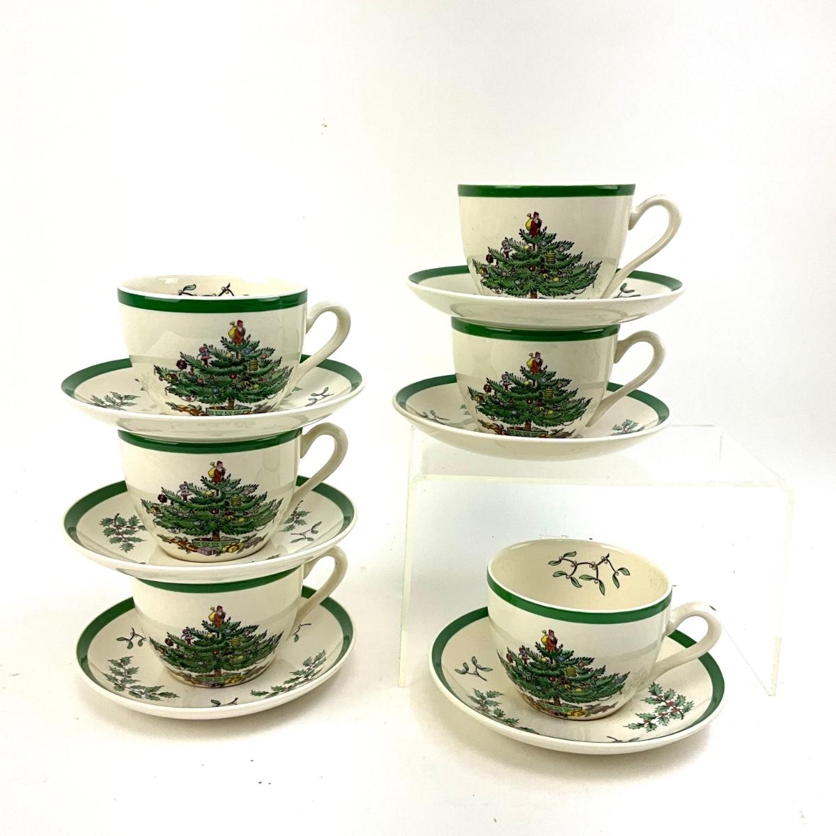 608 Set of 6 SPODE Christmas Tree Cups and Saucers