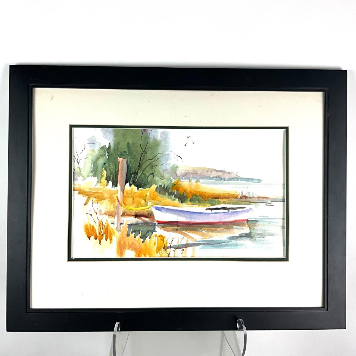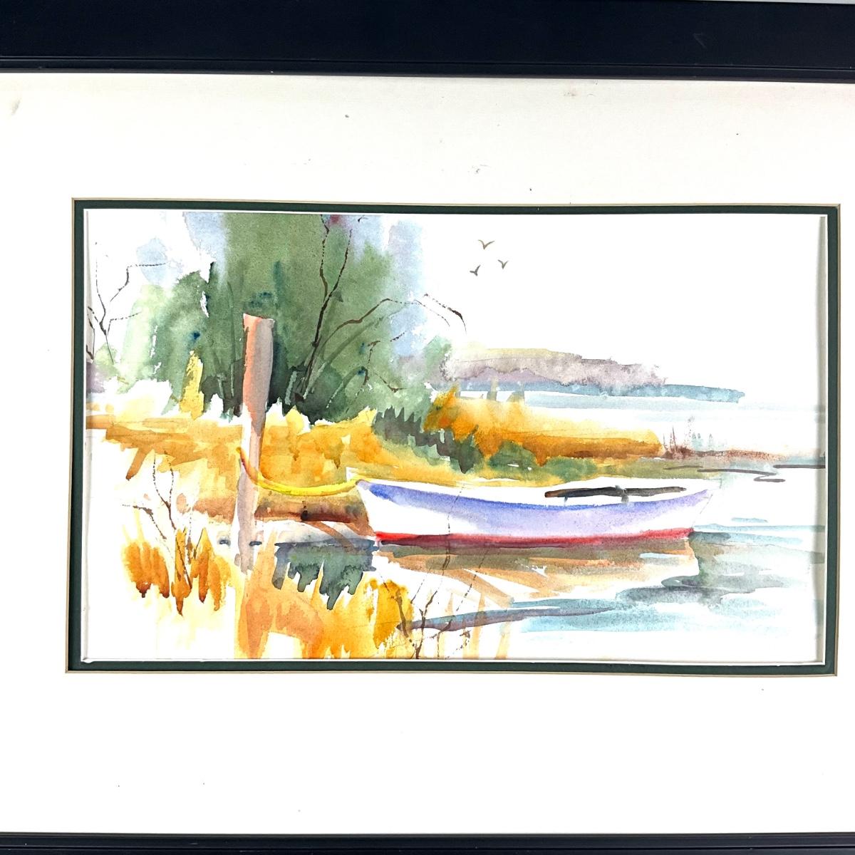 609 Original Watercolor of Small Skiff Docked by Peggy Blades