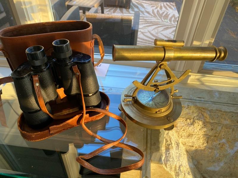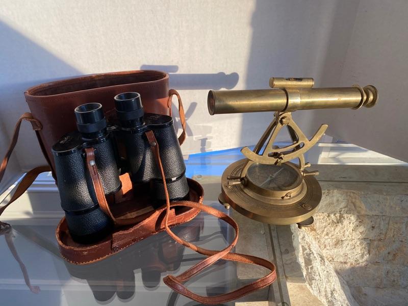 F - 609 Vintage Military Binoculars & Antique Brass Telescope