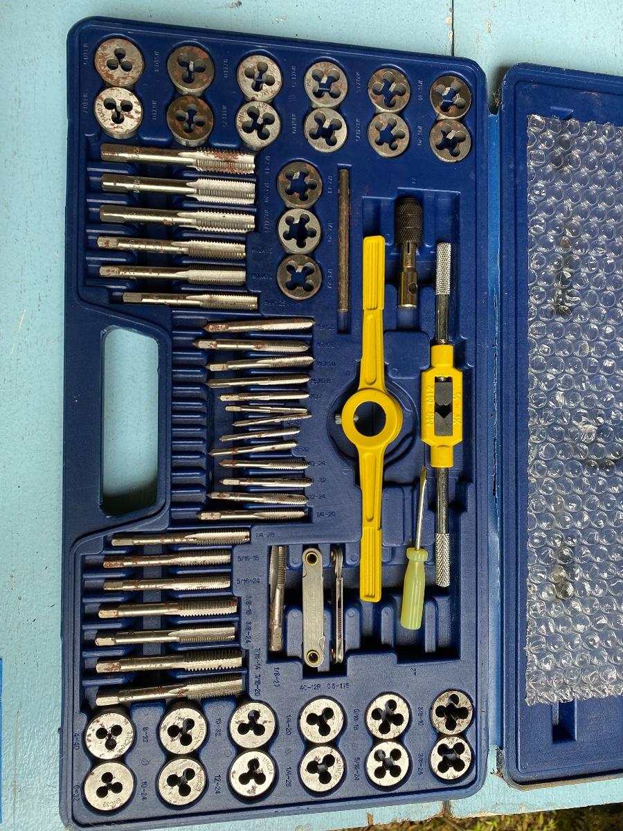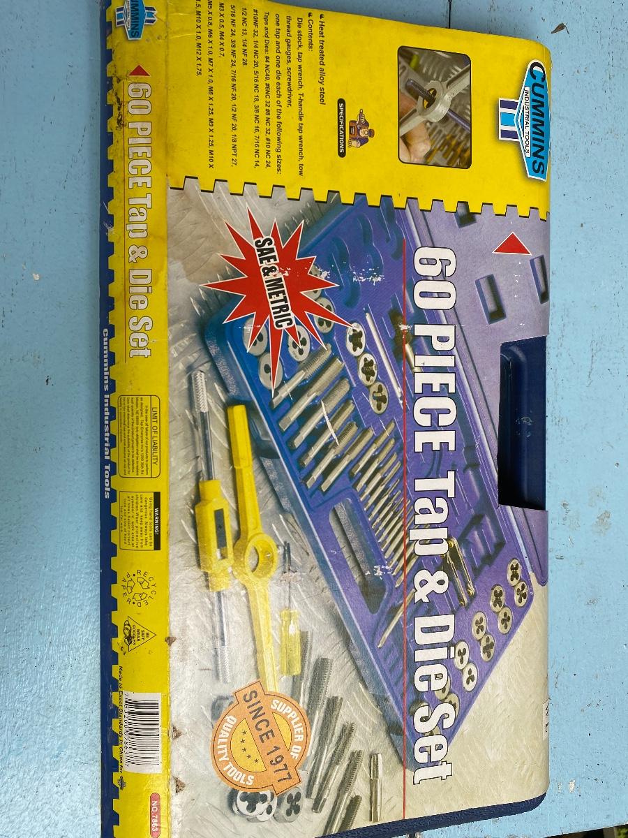 60-piece Tap and Die Set, complete set in box. Tools have some rust but very useable.