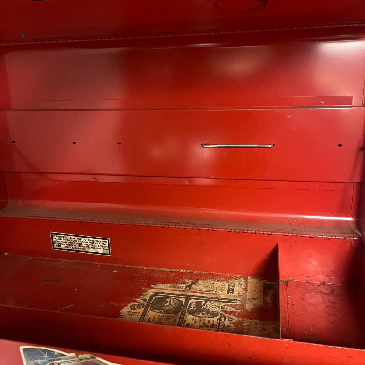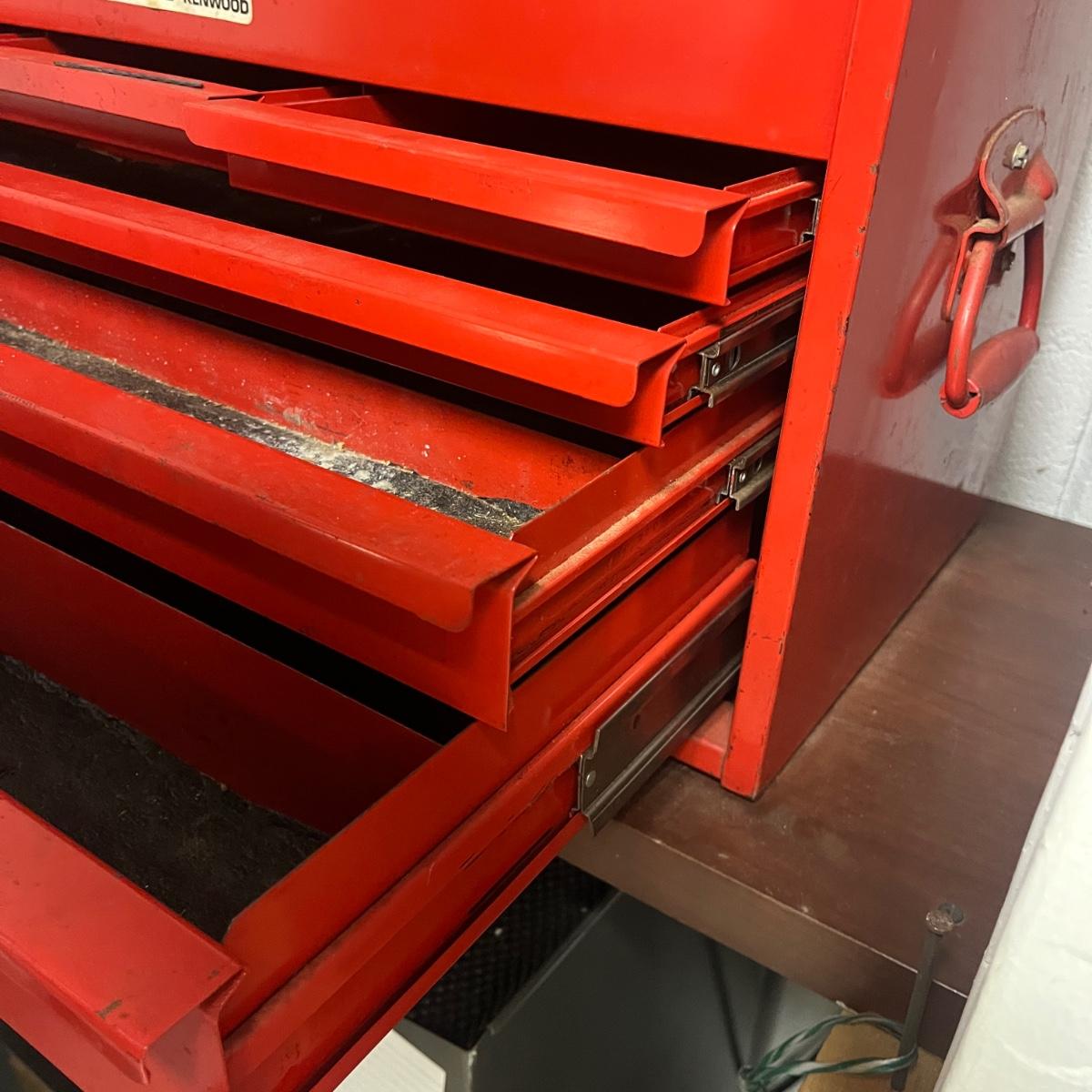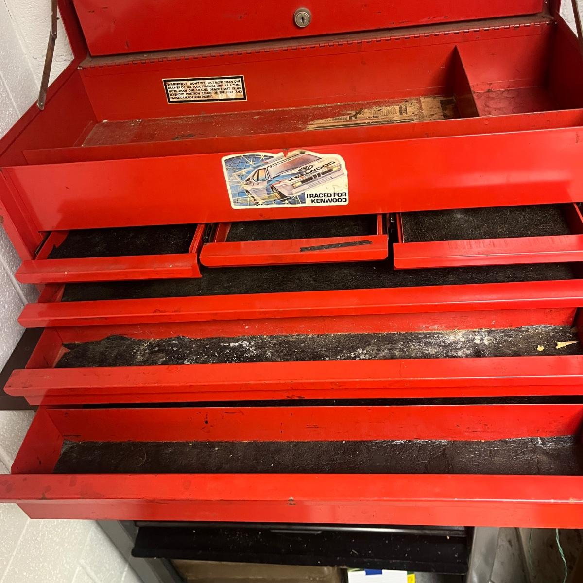 Lot includes a metal six drawer 60th Anniversary Snap On toolbox. Box measures 26” x 12” x 15”H.