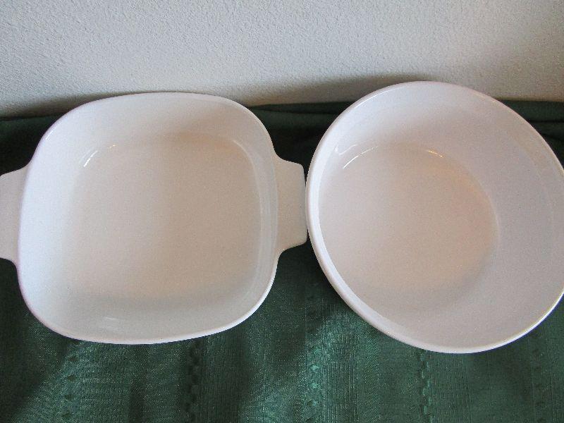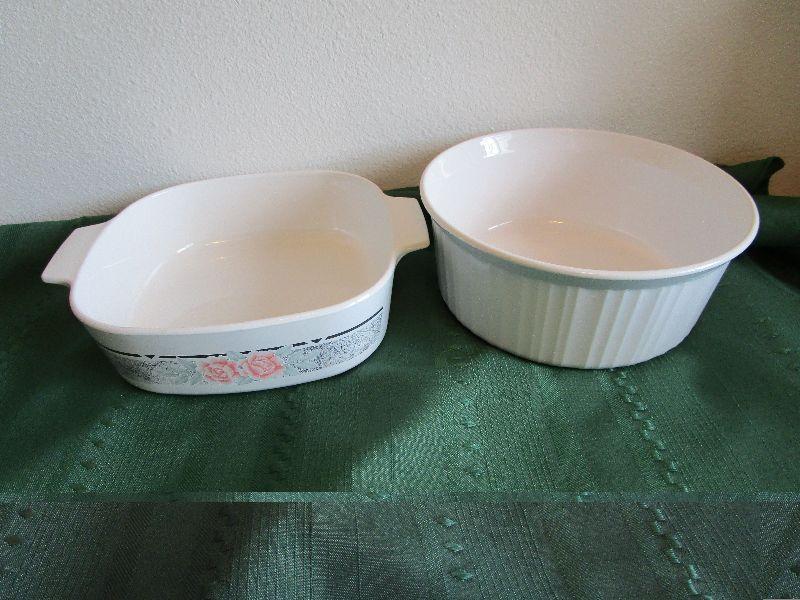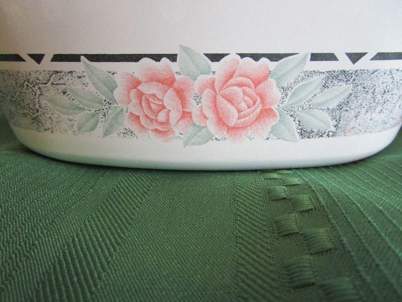 Silk and Roses model A2B 2 liter dish; French White model F1B 2.5 liter casserole dish; excellent condition