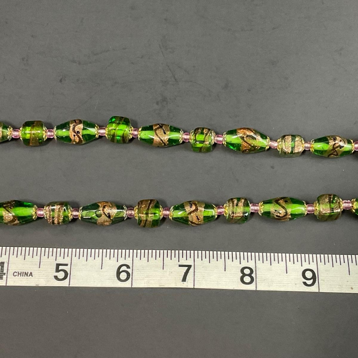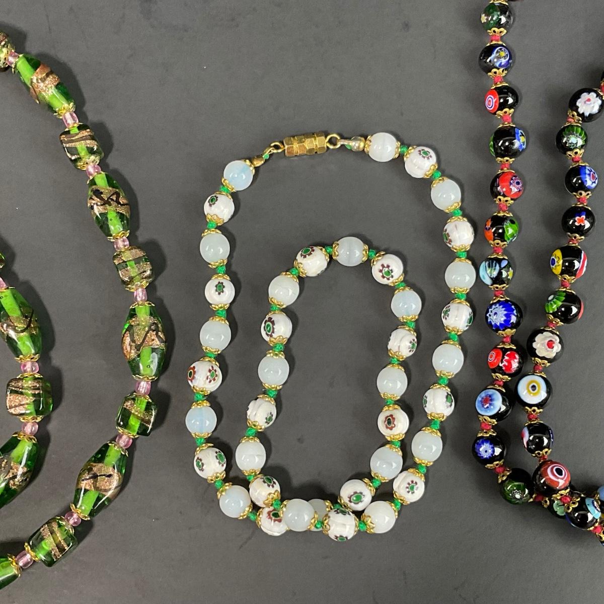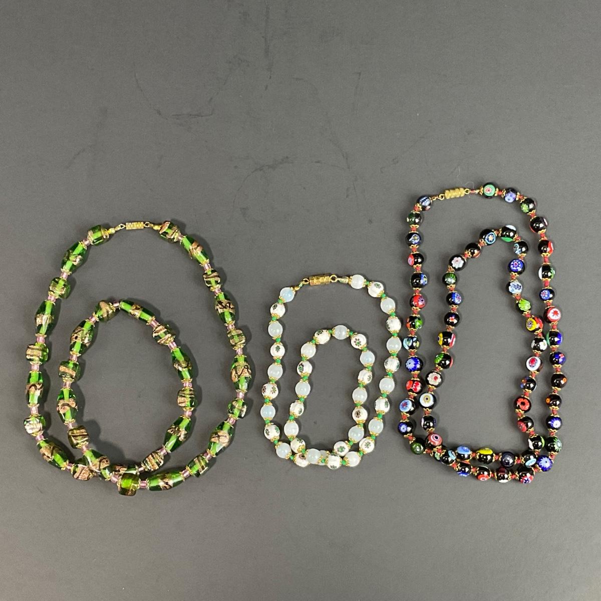 Three assorted Italian necklaces including one Venetian glass necklace, one Murano white millefiori necklace, and one Murano black millefiori necklace. Please see photos for details and condition. Any condition statement is given as a courtesy to a client, is an opinion, and should not be treated as a statement of fact. Reference to condition written, oral or within a condition report shall not be regarded as a full account of condition and may not include all defects, alterations, or restorations. Absence of a condition report does not imply a lot is flawless or lacking imperfections or damage. Katherine’s Auction & Appraisal Service shall have no responsibility for any error or omission. Returns shall not be accepted on the basis of condition. ::: Shipping is available on this lot. If you require shipping you must let us know at the close of the auction. We will coordinate with you after the item has been won. Shipping fees will include insurance up to or exceeding the value of all items being mailed. If you have any questions regarding this lot please contact the auctioneer either via this website, by direct email or by phone. PICK UP TIMES and other important information can be found in the TERMS and DESCRIPTION of the auction. Please take a look for pertinent information. Thanks!