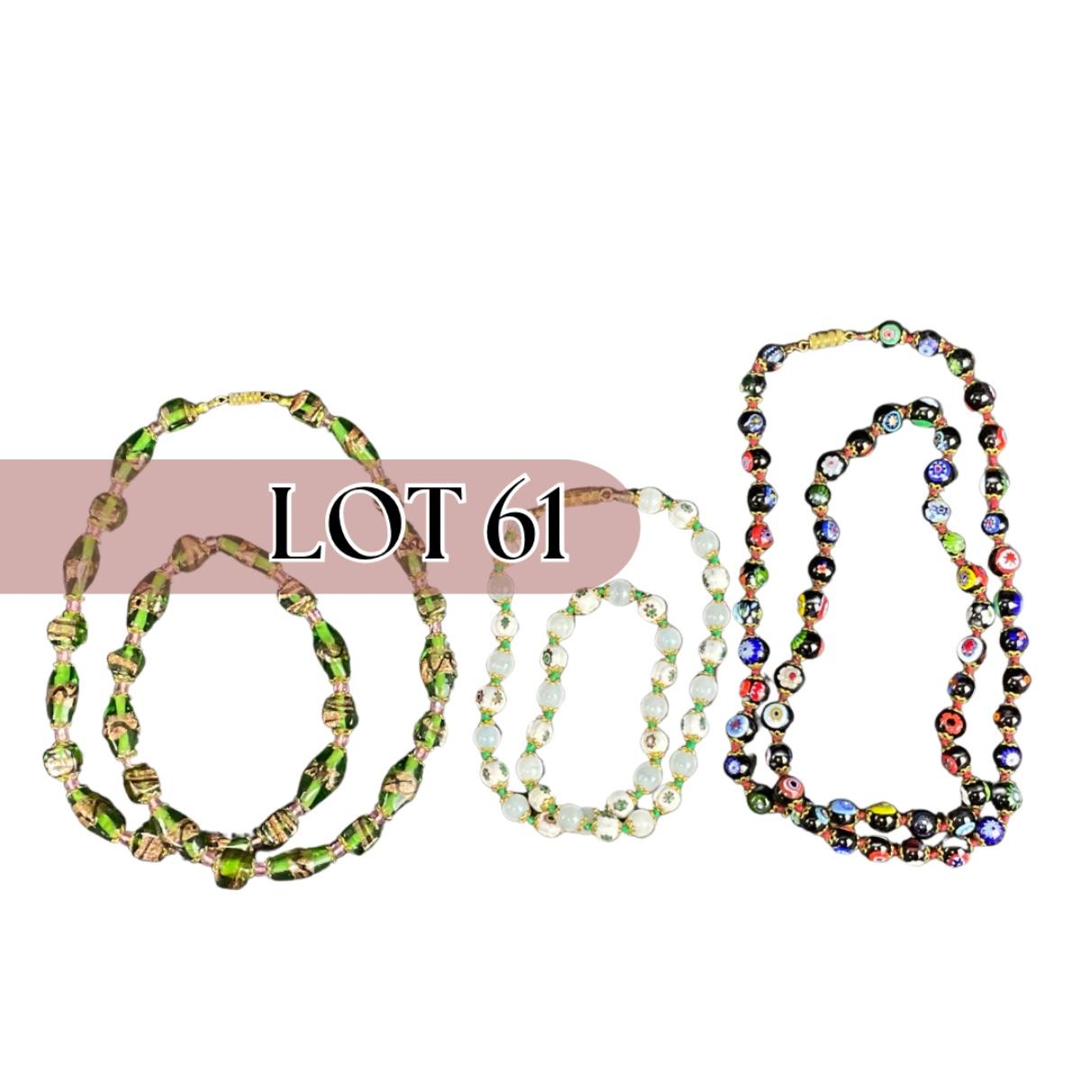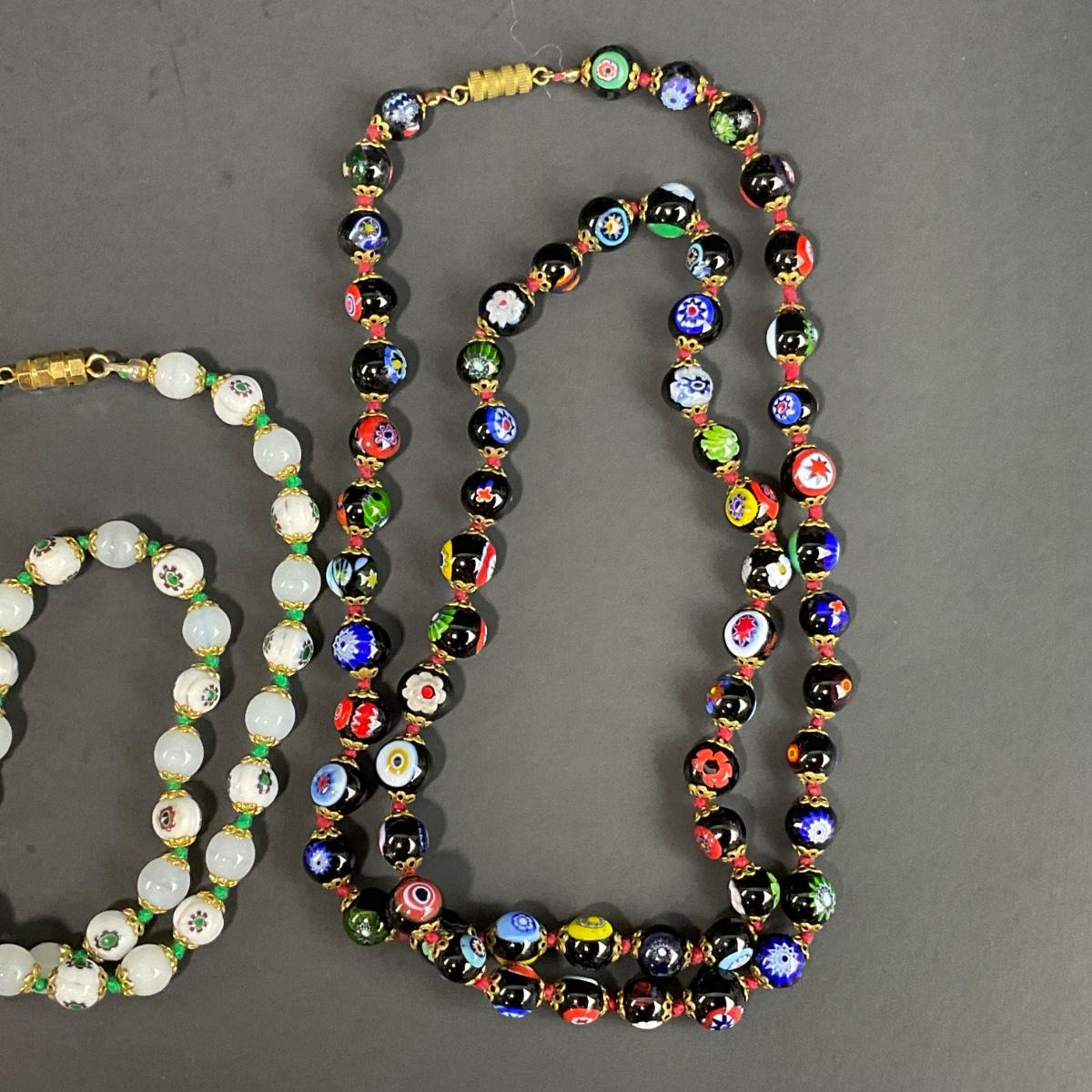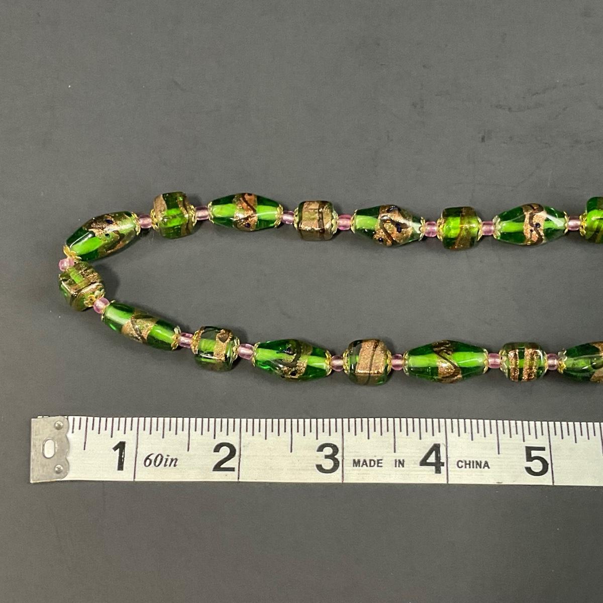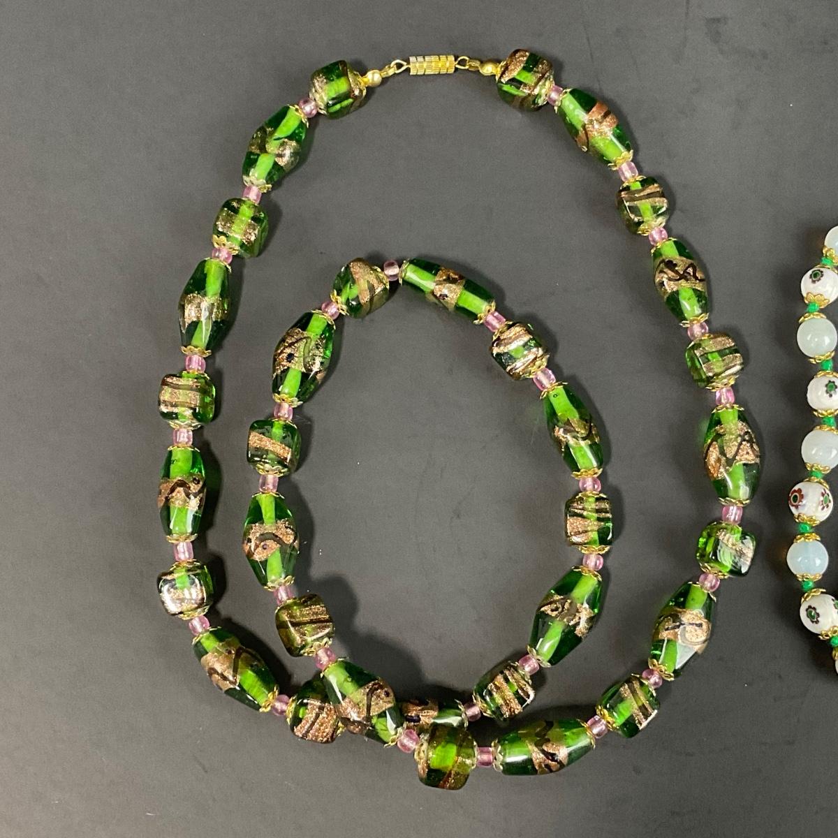 Three assorted Italian necklaces including one Venetian glass necklace, one Murano white millefiori necklace, and one Murano black millefiori necklace. Please see photos for details and condition. Any condition statement is given as a courtesy to a client, is an opinion, and should not be treated as a statement of fact. Reference to condition written, oral or within a condition report shall not be regarded as a full account of condition and may not include all defects, alterations, or restorations. Absence of a condition report does not imply a lot is flawless or lacking imperfections or damage. Katherine’s Auction & Appraisal Service shall have no responsibility for any error or omission. Returns shall not be accepted on the basis of condition. ::: Shipping is available on this lot. If you require shipping you must let us know at the close of the auction. We will coordinate with you after the item has been won. Shipping fees will include insurance up to or exceeding the value of all items being mailed. If you have any questions regarding this lot please contact the auctioneer either via this website, by direct email or by phone. PICK UP TIMES and other important information can be found in the TERMS and DESCRIPTION of the auction. Please take a look for pertinent information. Thanks!