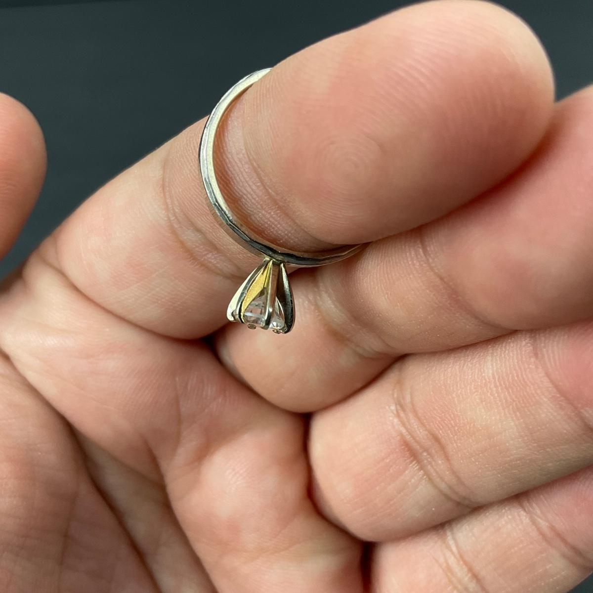 One marked and tested 14k gold and diamond ring. This piece is a size. The total weight of this piece is 1.5 DWT. Please see photos for details and condition. Any condition statement is given as a courtesy to a client, is an opinion, and should not be treated as a statement of fact. Reference to condition written, oral or within a condition report shall not be regarded as a full account of condition and may not include all defects, alterations, or restorations. Absence of a condition report does not imply a lot is flawless or lacking imperfections or damage. Katherine’s Auction & Appraisal Service shall have no responsibility for any error or omission. Returns shall not be accepted on the basis of condition. ::: Shipping is available on this lot. If you require shipping you must let us know at the close of the auction. We will coordinate with you after the item has been won. Shipping fees will include insurance up to or exceeding the value of all items being mailed. If you have any questions regarding this lot please contact the auctioneer either via this website, by direct email or by phone. PICK UP TIMES and other important information can be found in the TERMS and DESCRIPTION of the auction. Please take a look for pertinent information. Thanks!