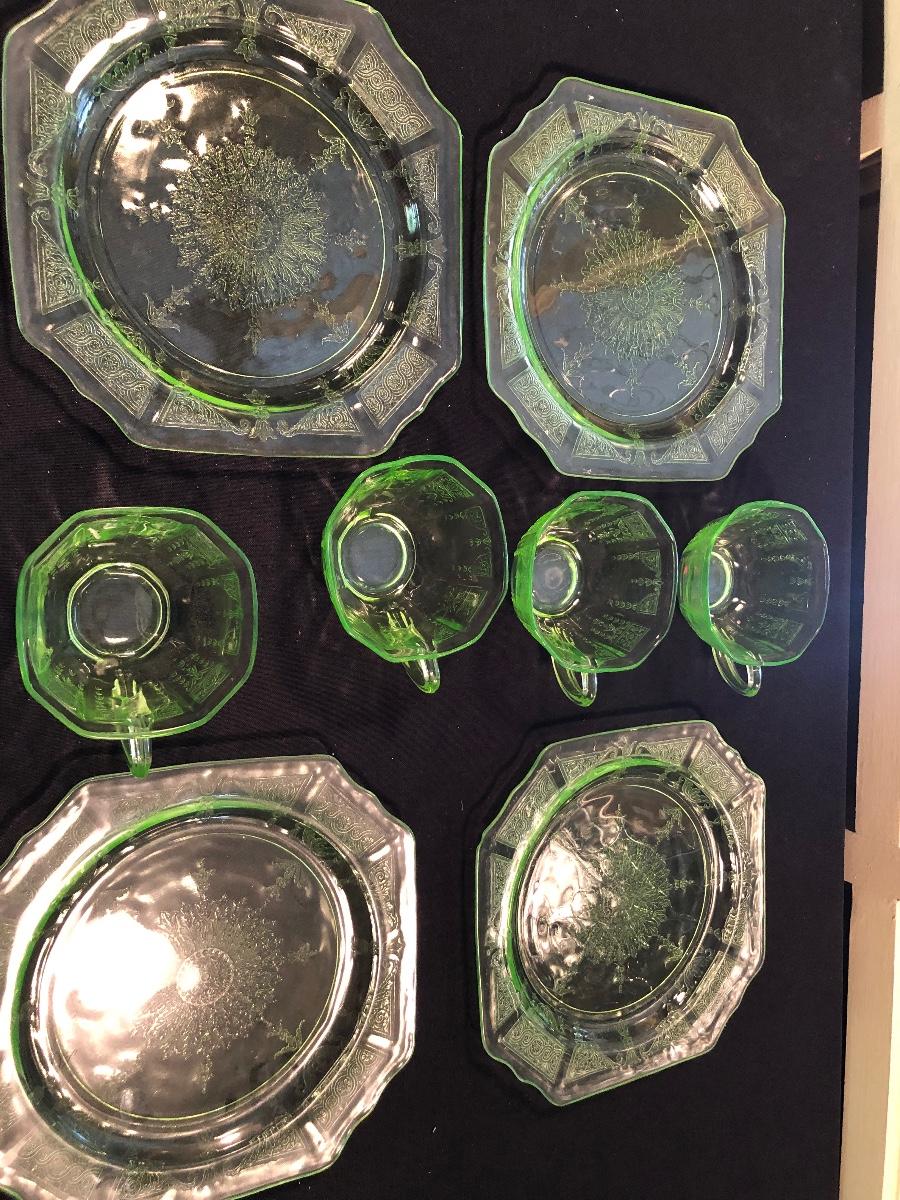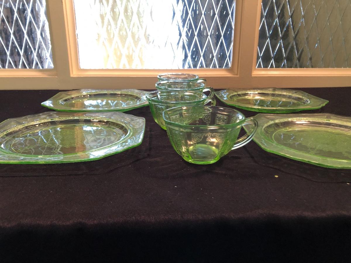 #61 Green glass cups and plates