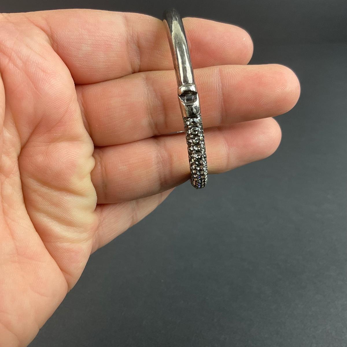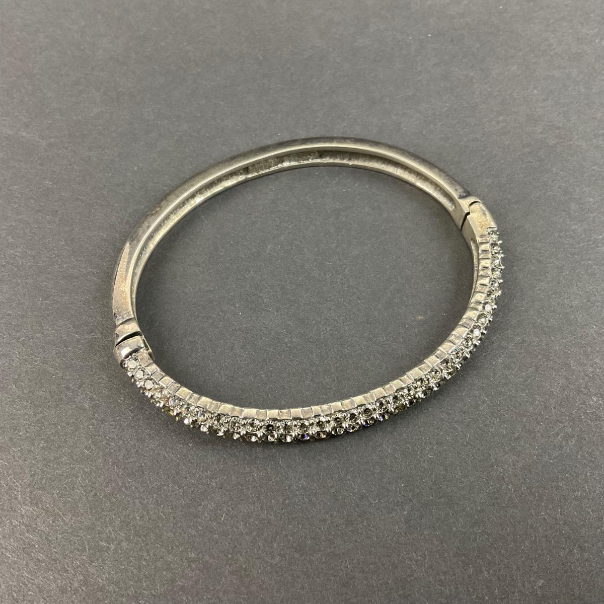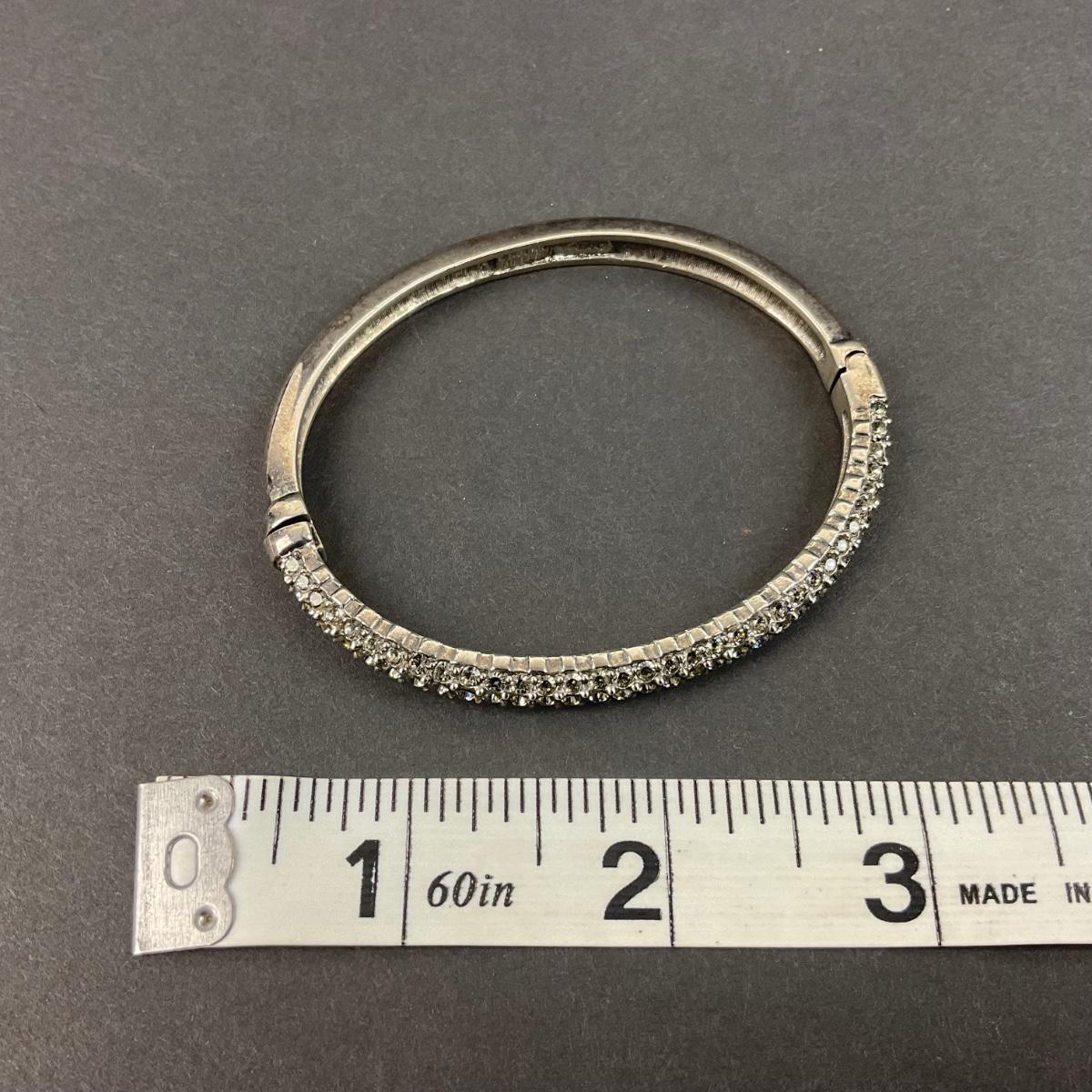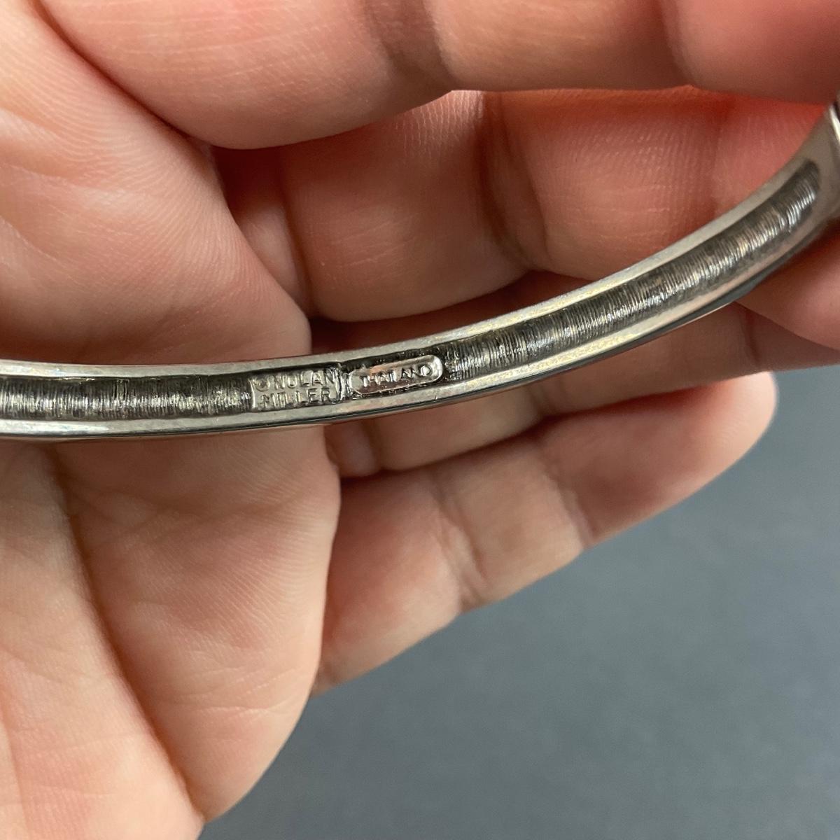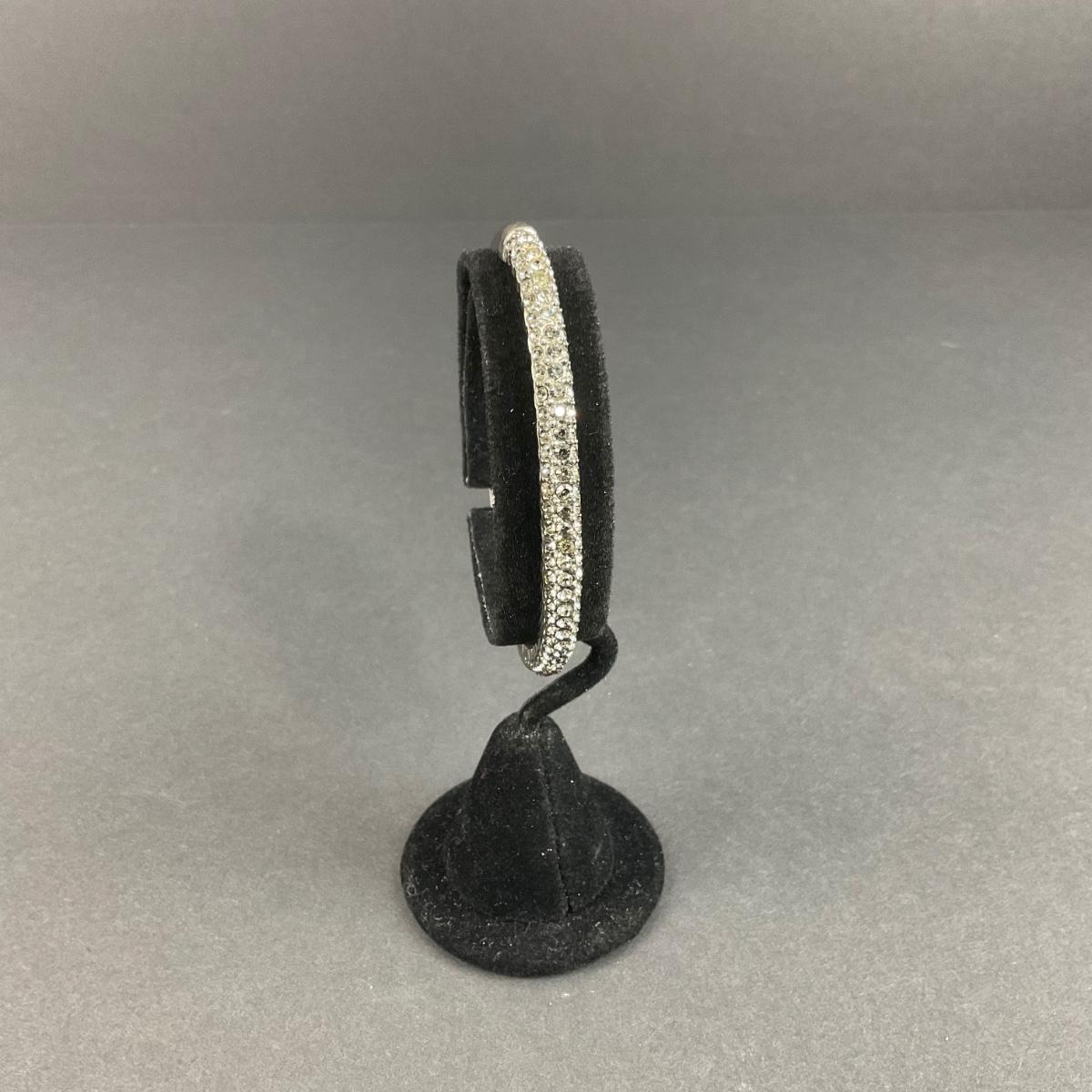 One vintage marked Nolan Miller Thailand rhinestone bracelet. Please see photos for details and condition. Any condition statement is given as a courtesy to a client, is an opinion, and should not be treated as a statement of fact. Reference to condition written, oral or within a condition report shall not be regarded as a full account of condition and may not include all defects, alterations, or restorations. Absence of a condition report does not imply a lot is flawless or lacking imperfections or damage. Katherine’s Auction & Appraisal Service shall have no responsibility for any error or omission. Returns shall not be accepted on the basis of condition. ::: Shipping is available on this lot. If you require shipping you must let us know at the close of the auction. We will coordinate with you after the item has been won. Shipping fees will include insurance up to or exceeding the value of all items being mailed. If you have any questions regarding this lot please contact the auctioneer either via this website, by direct email or by phone. PICK UP TIMES and other important information can be found in the TERMS and DESCRIPTION of the auction. Please take a look for pertinent information. Thanks!