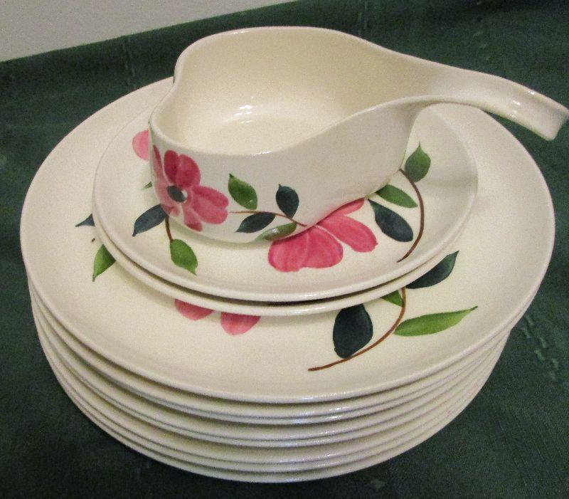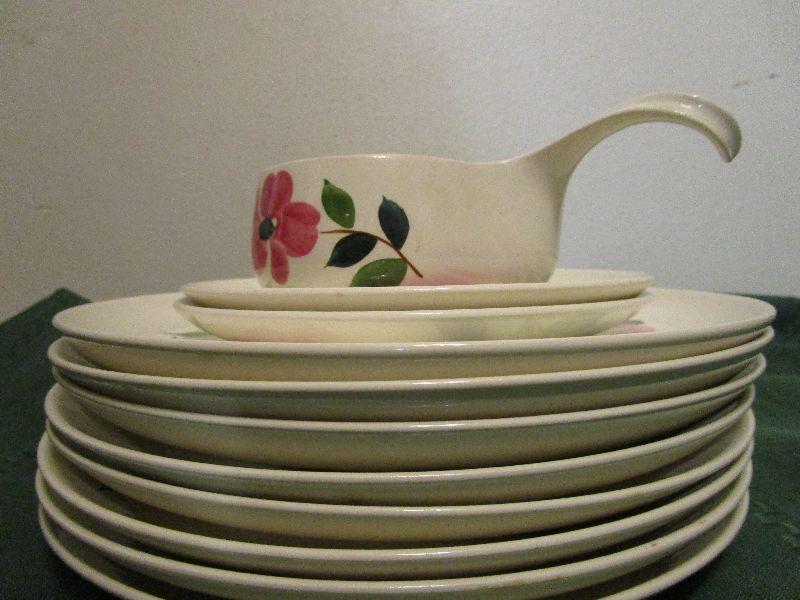 8- 10" plates, 2-7.5" plates, 1-5"x2" dish with handle (Soup bowl maybe?)