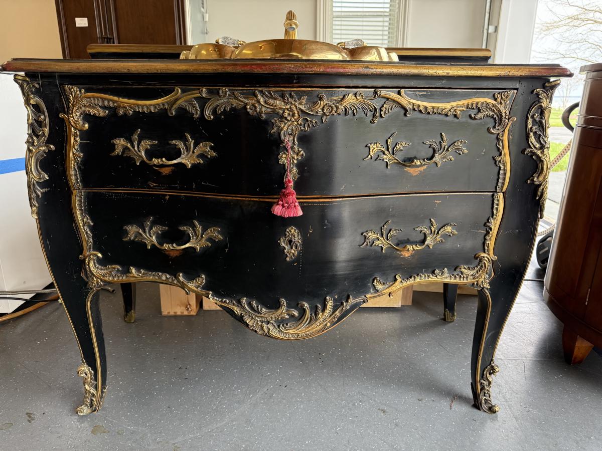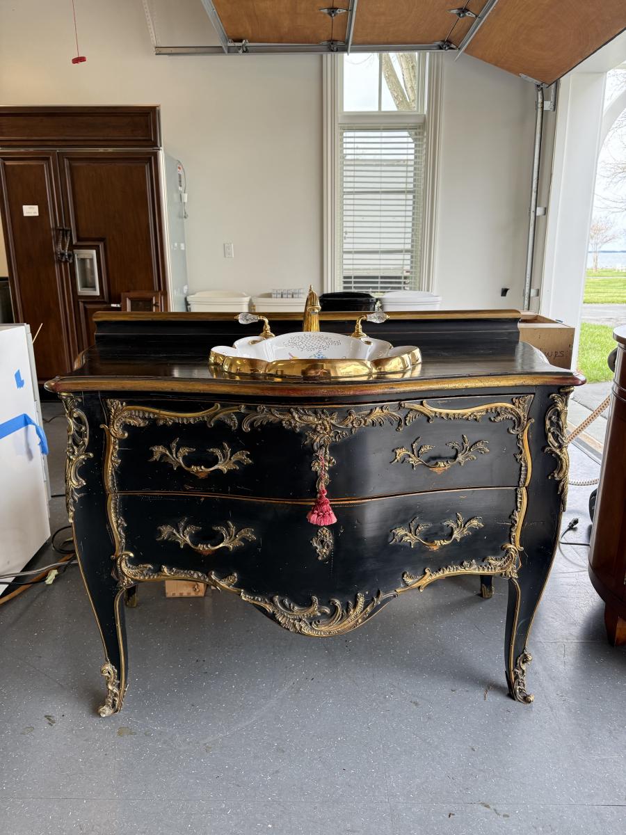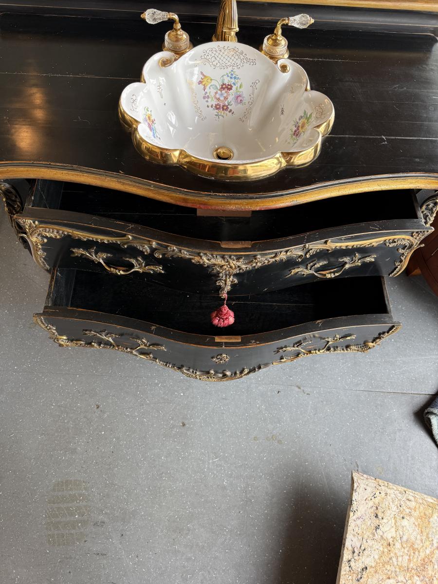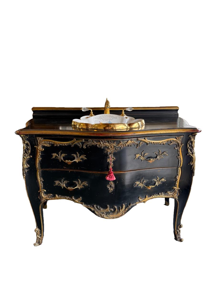 610 Louis XV Style Ebonised Vanityw/Porcelain Hand-Painted Sink