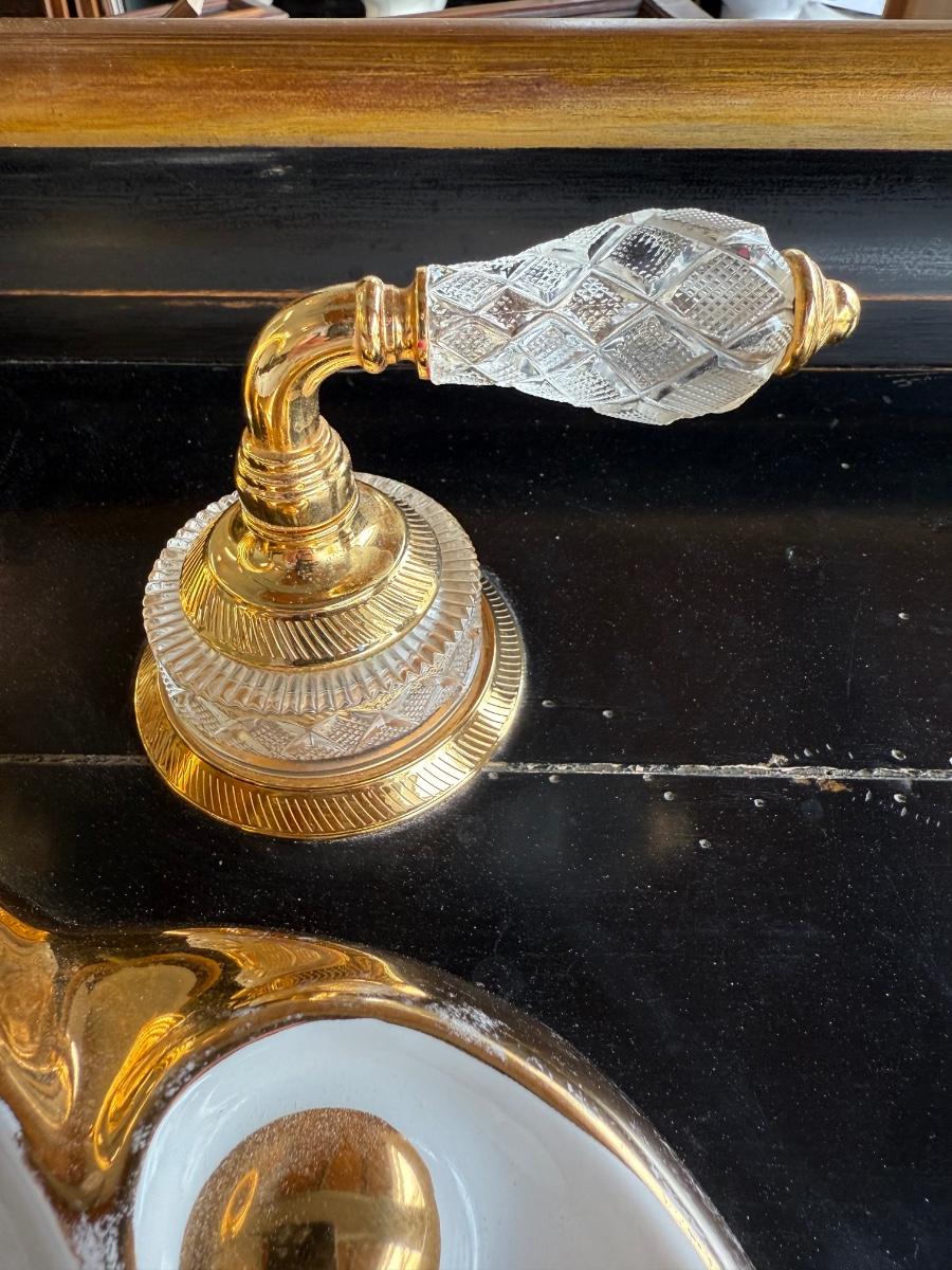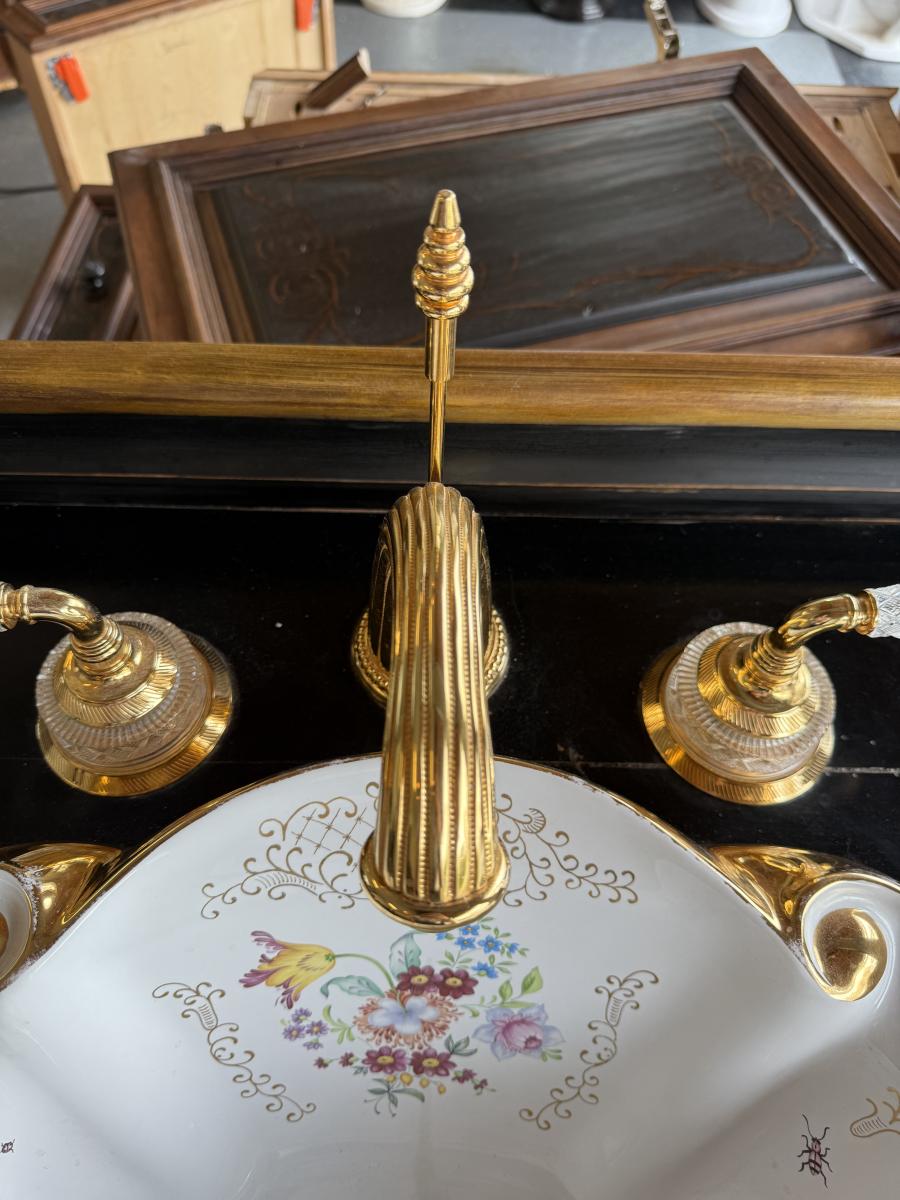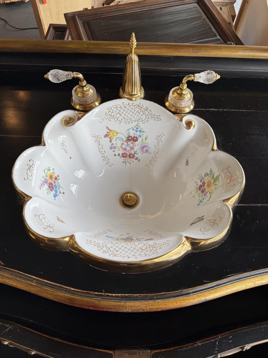Origin: French inspired design. This piece has been modified with an Atlantis Porcelain Art-hand-painted porcelain sink. Here's some information: