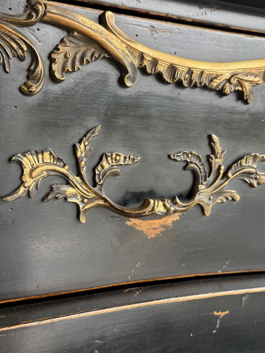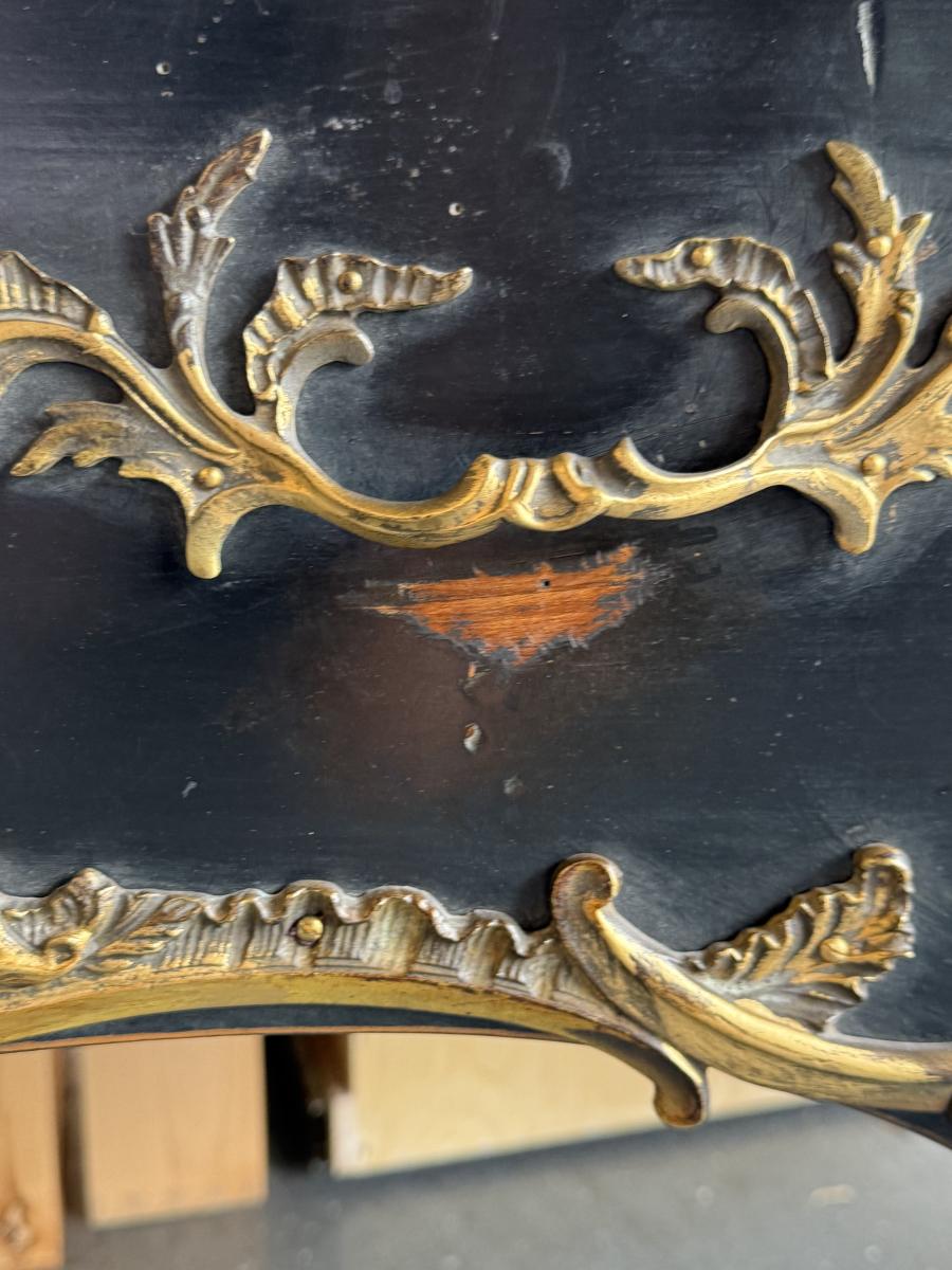 Style: Louis XV, characterized by its curved lines and ornate decoration.